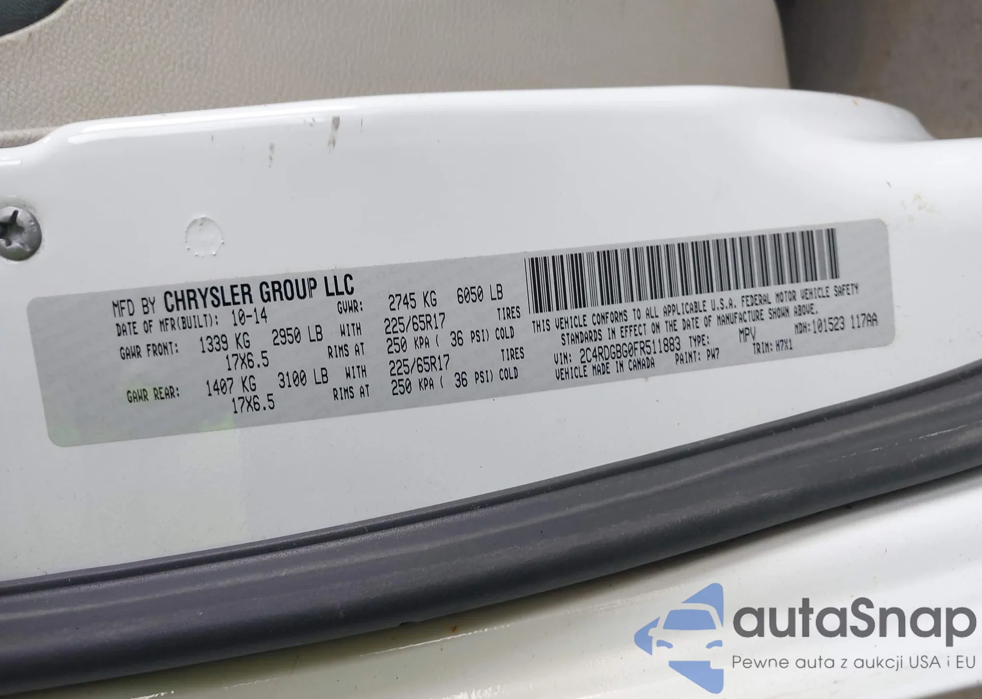 LOT: 42744000 VIN: 2C4RDGBG0FR511883