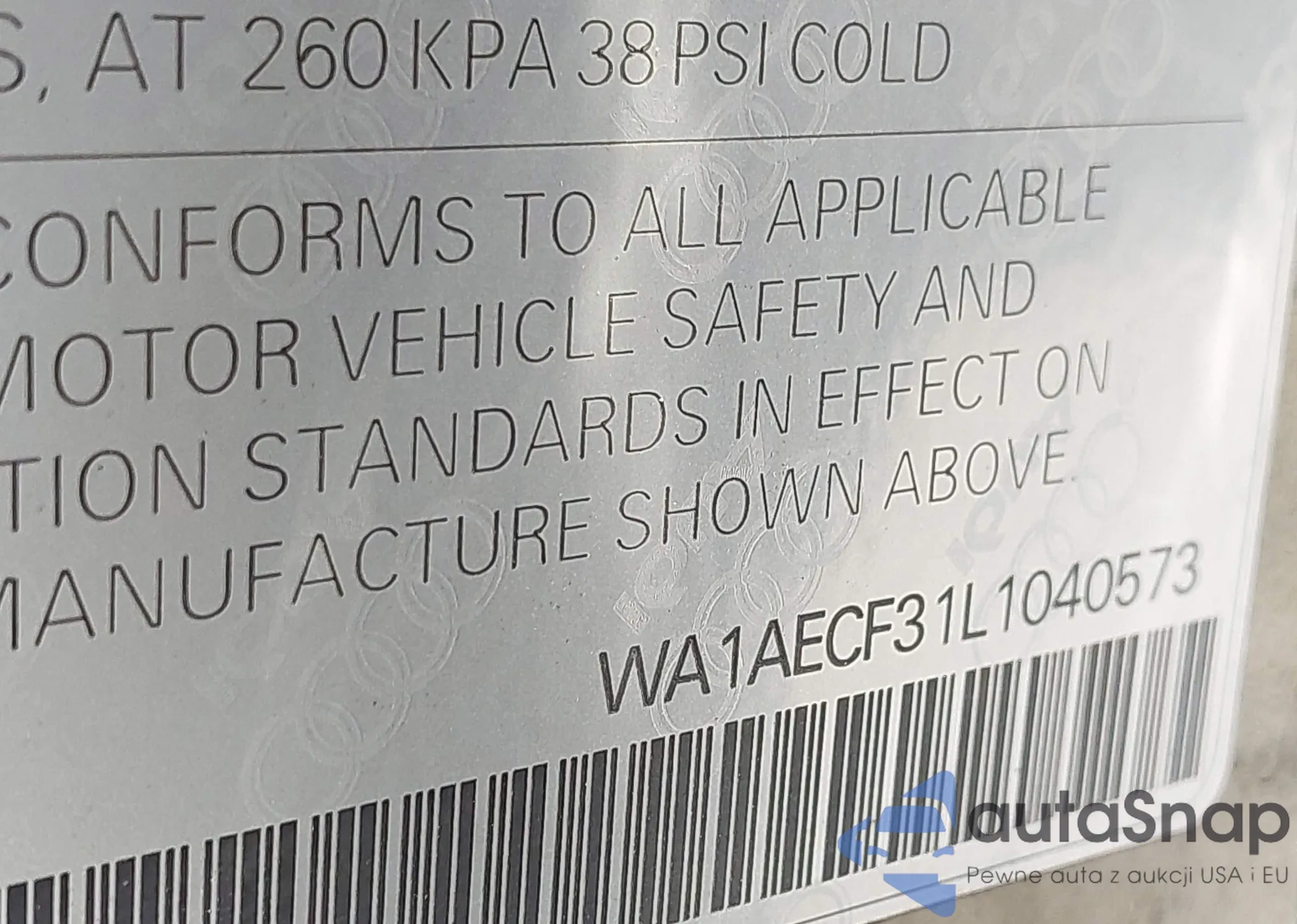 • VIN WA1AECF31L1040573