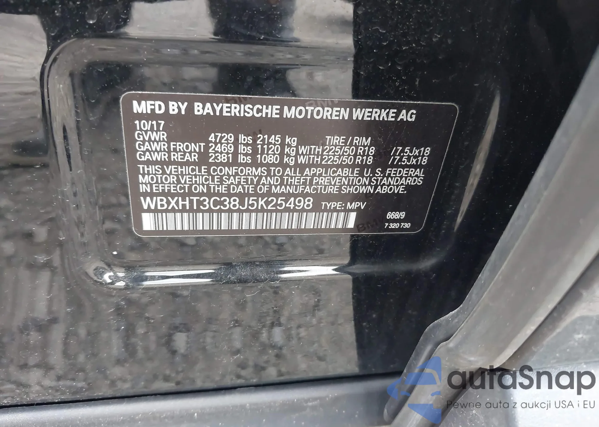 LOT: 42601598 VIN: WBXHT3C38J5K25498