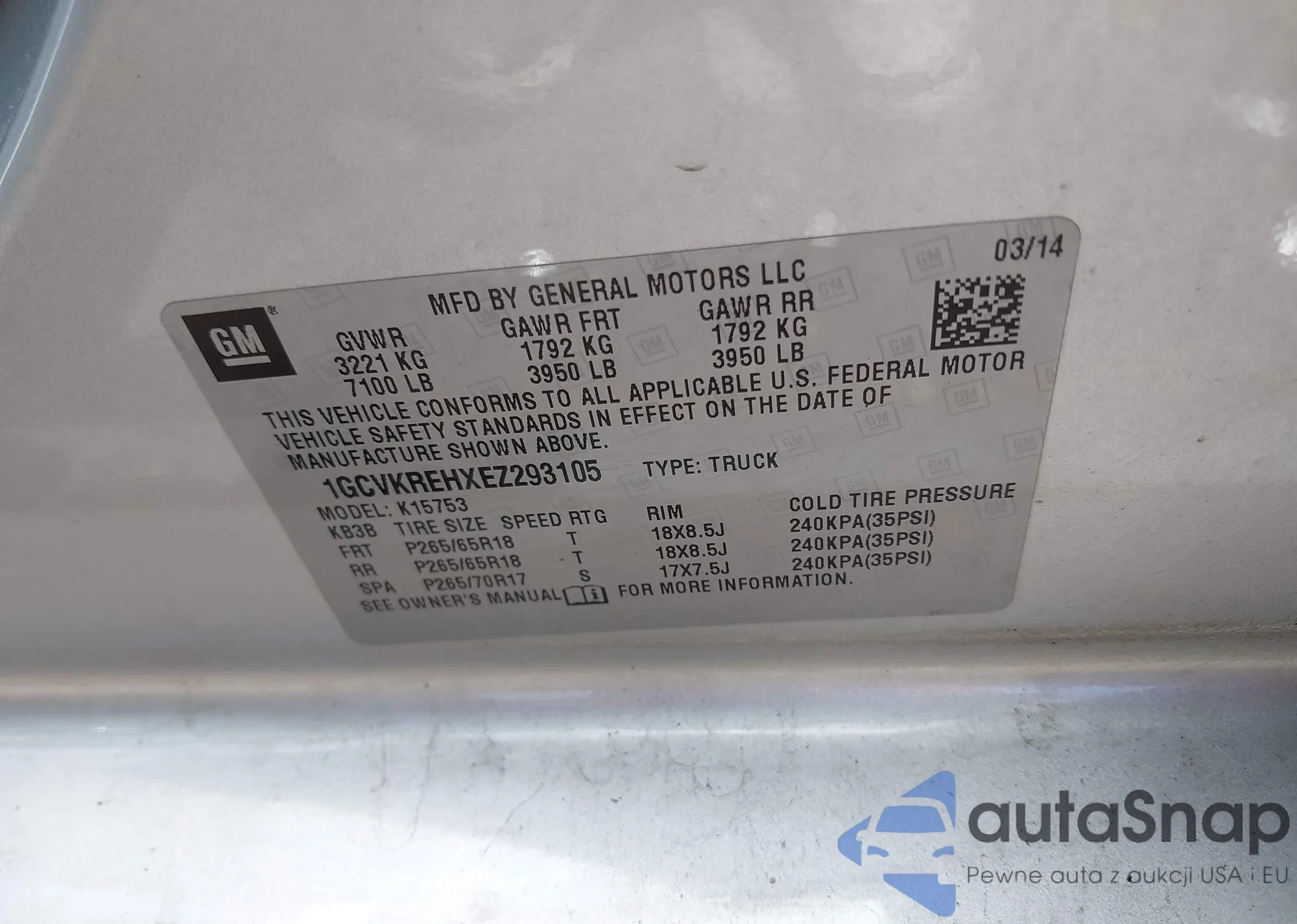 • VIN 1GCVKREHXEZ293105