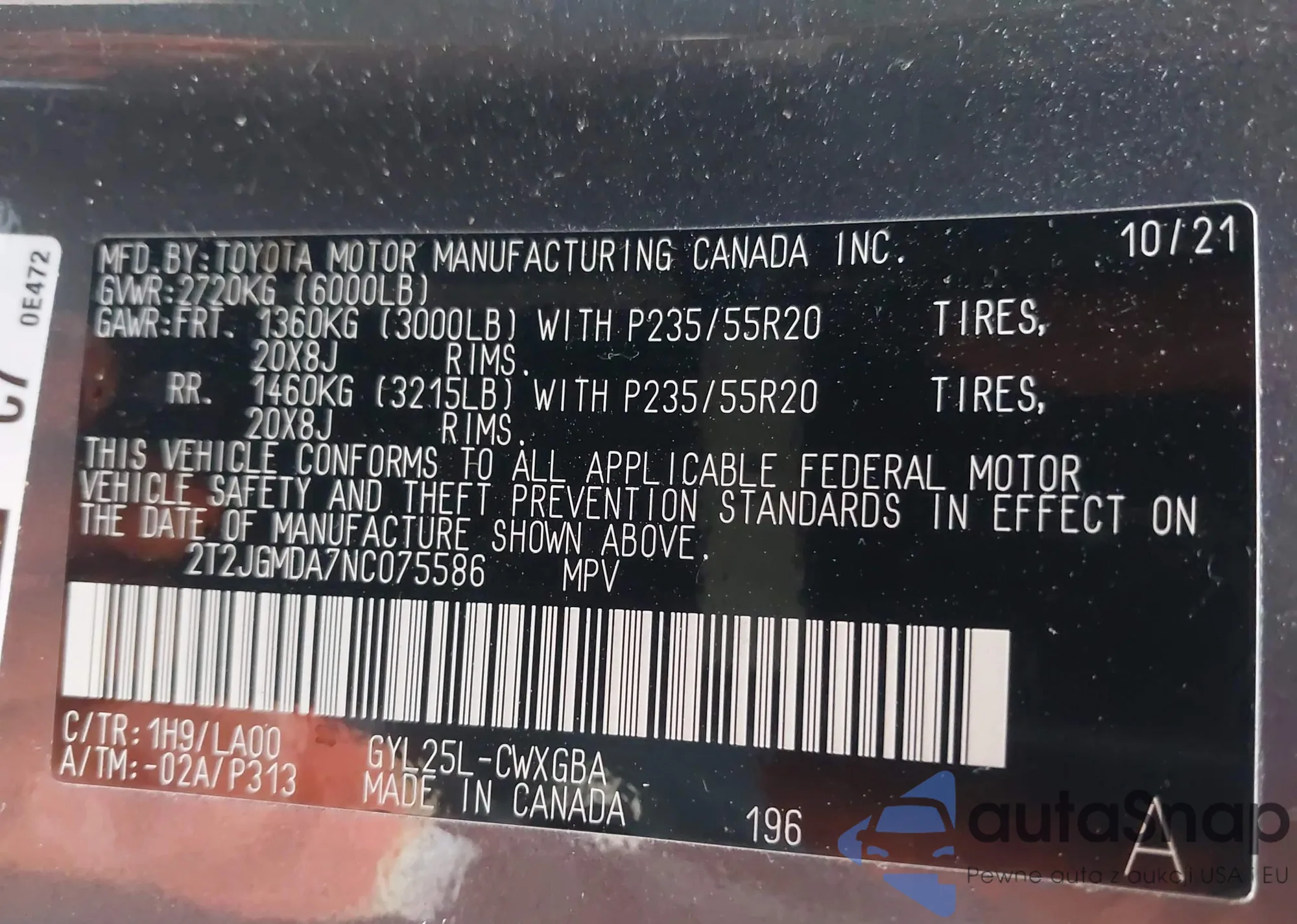 LOT: 42427283 VIN: 1GNSKPKL2NR225842
