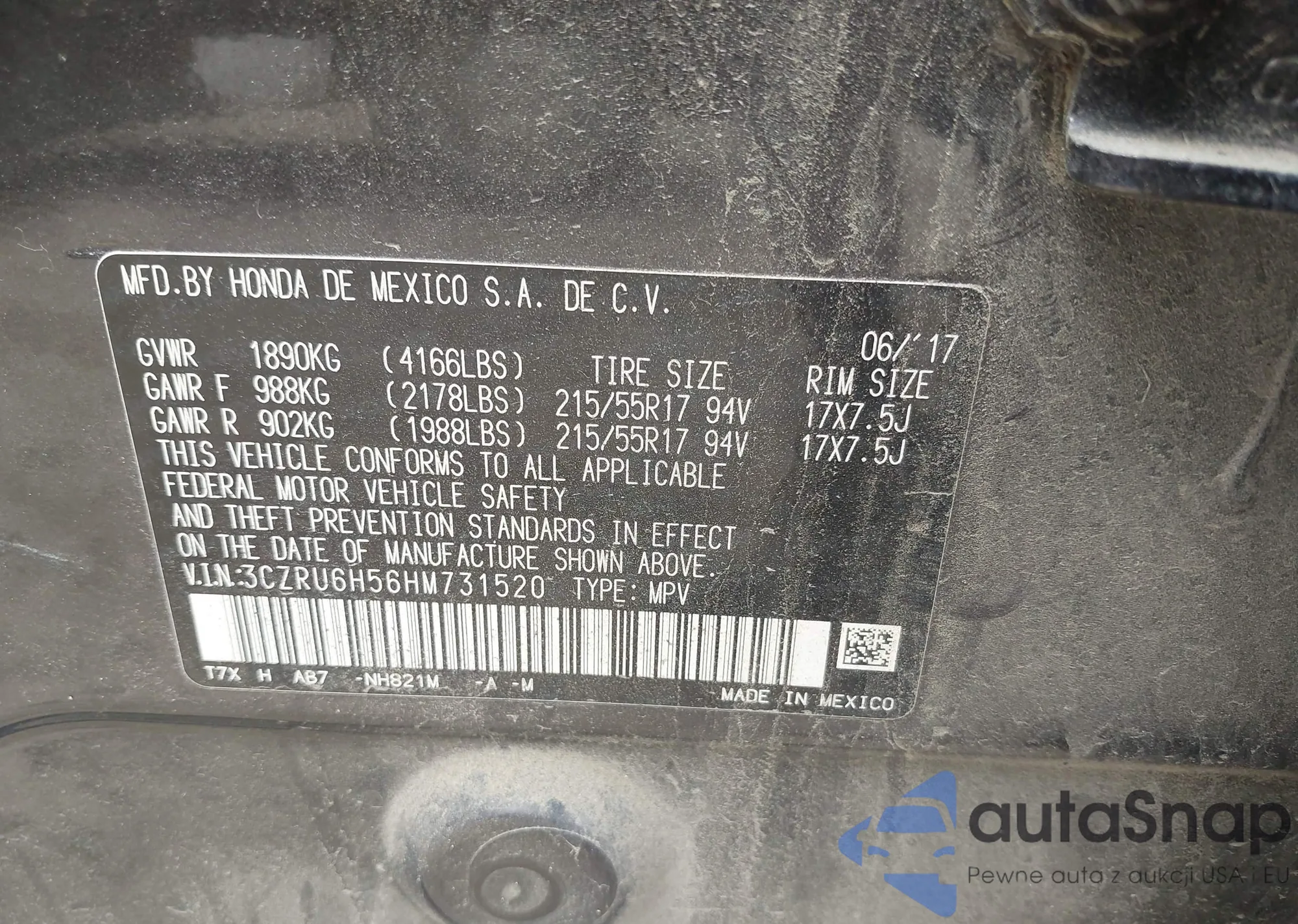 • VIN 3CZRU6H56HM731520