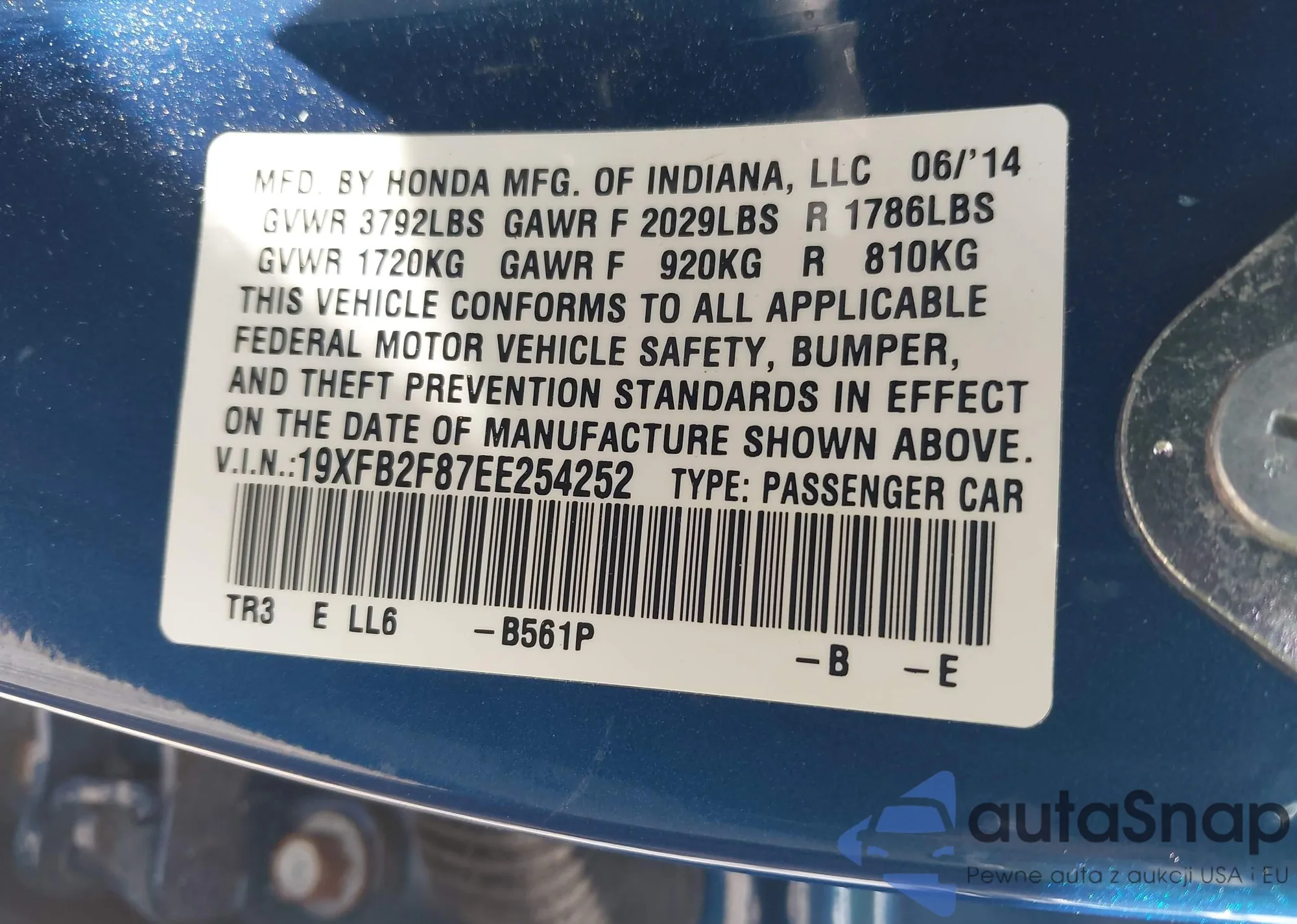 • VIN 19XFB2F87EE254252