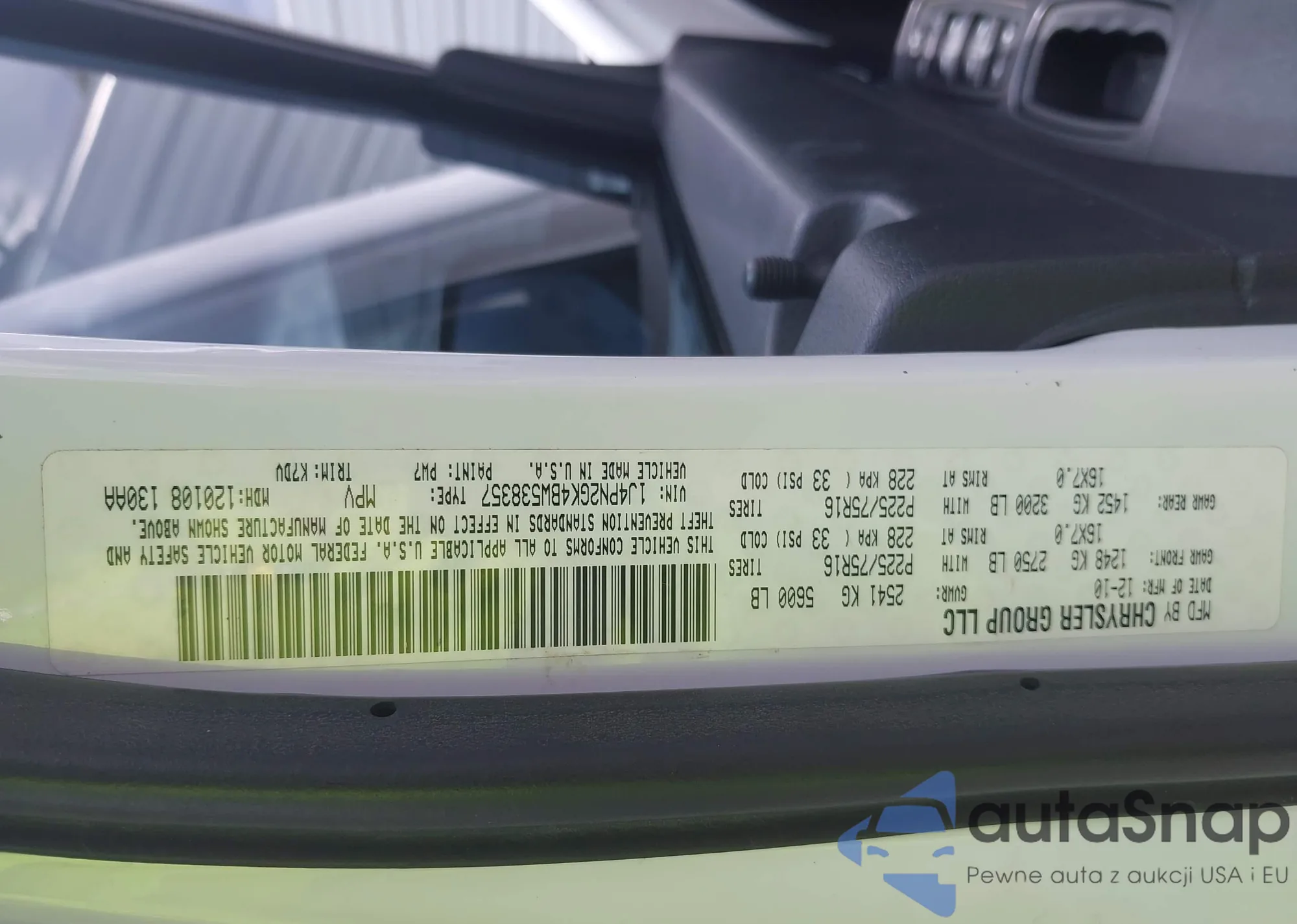 • VIN 1J4PN2GK4BW538357