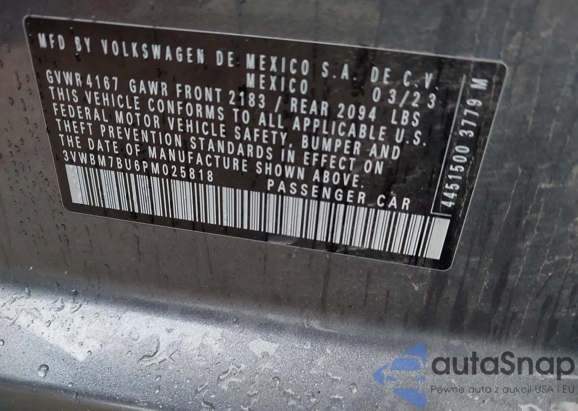 LOT: 42151831 VIN: 1VWLA7A33KC013920
