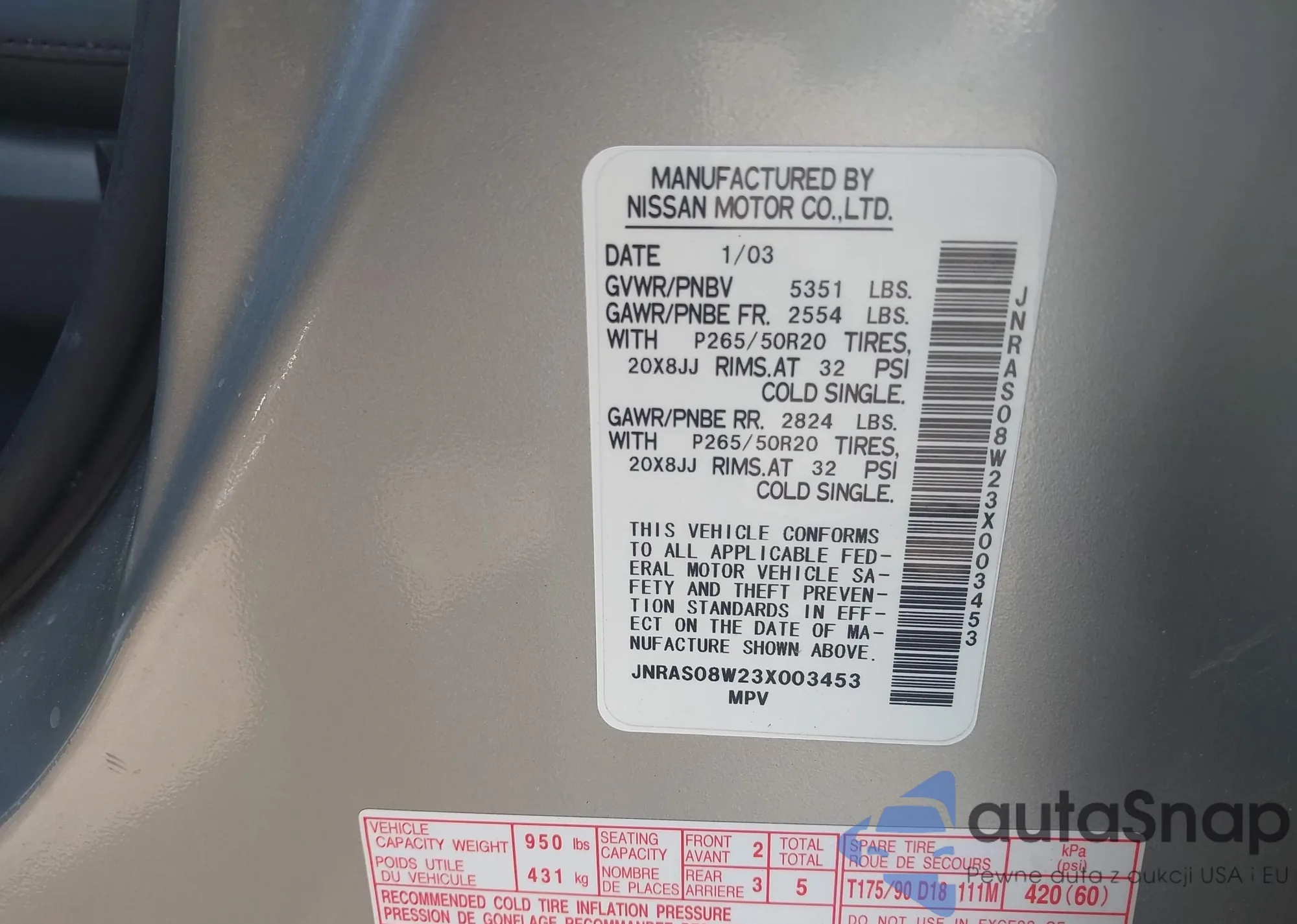 LOT: 42384819 VIN: JNRAS08W23X003453