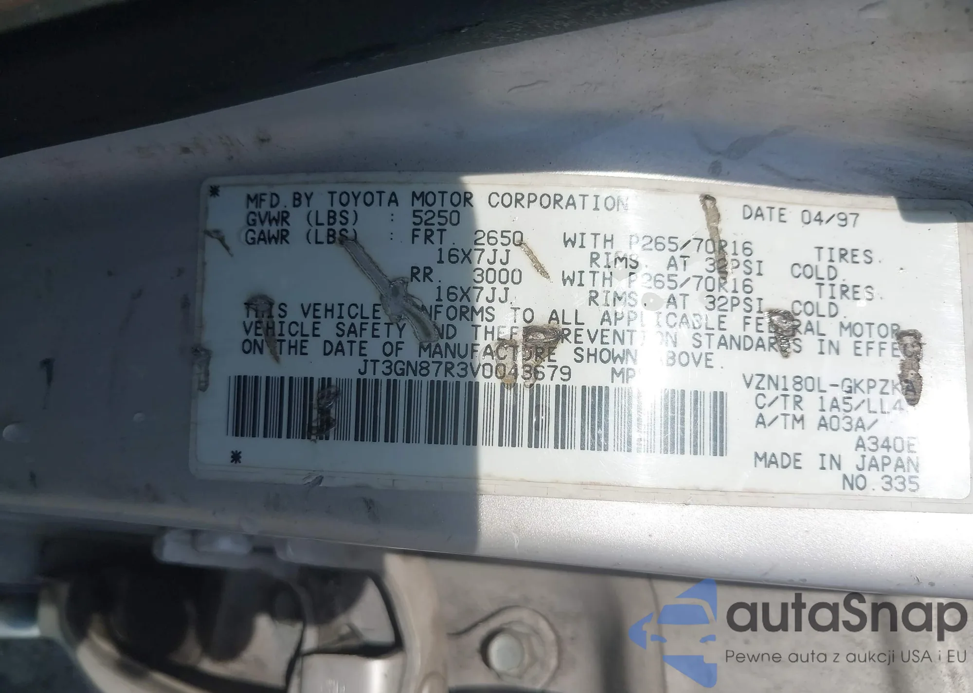 LOT: 42623572 VIN: JT3GN87R3V0043679