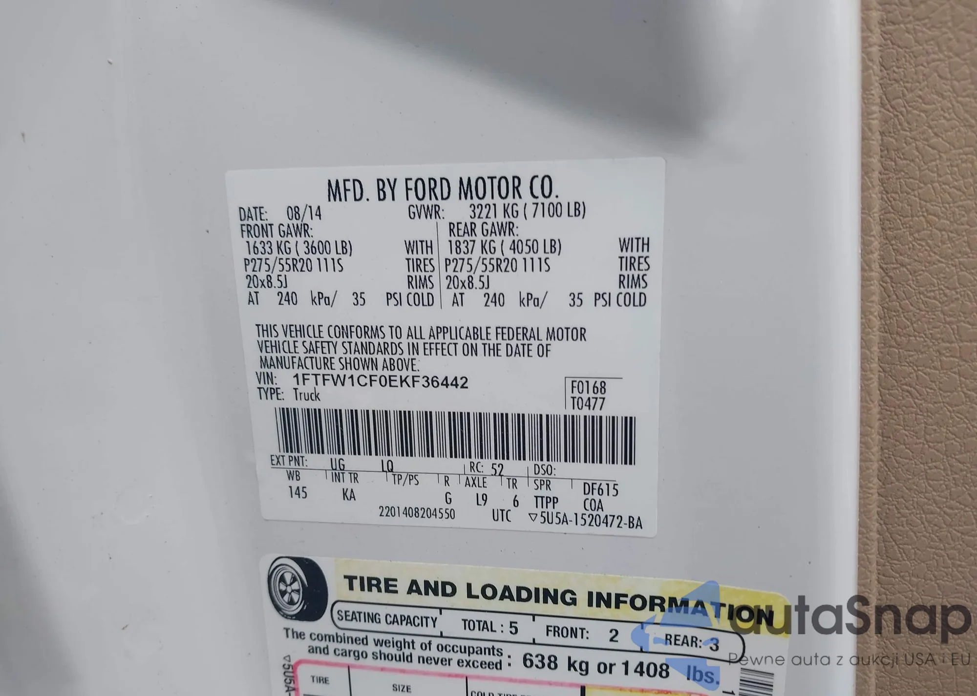 LOT: 42344720 VIN: 1FTFW1CF0EKF36442