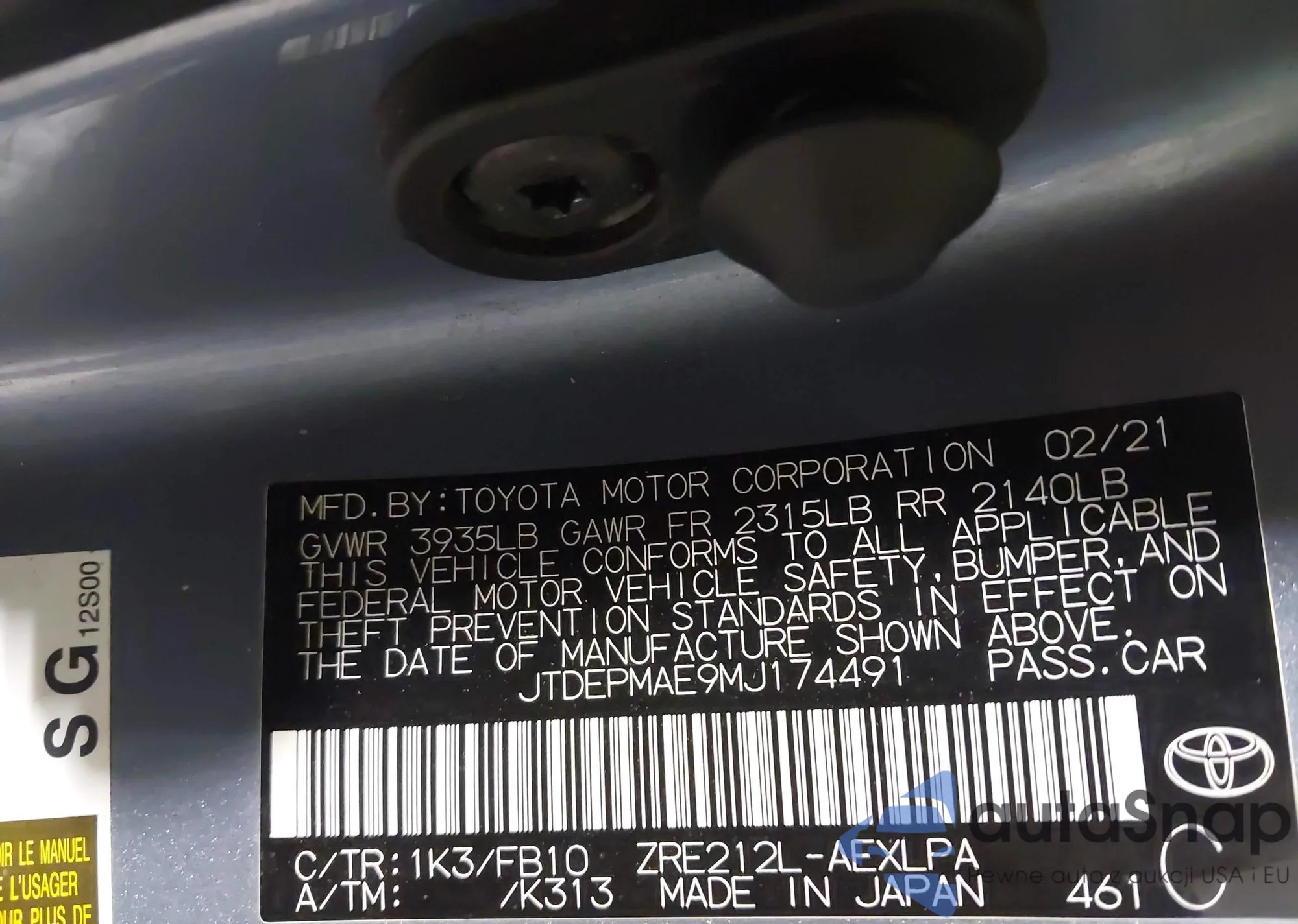 LOT: 42580476 VIN: 4T1BF3EK1BU744507