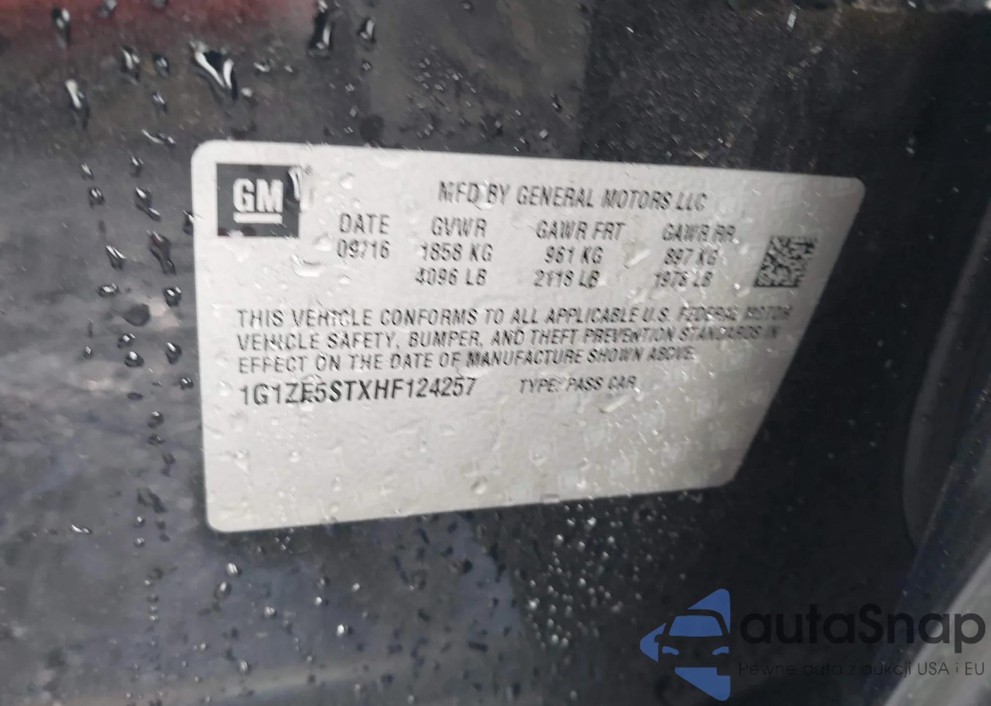 LOT: 42656918 VIN: 1G1ZE5STXHF124257