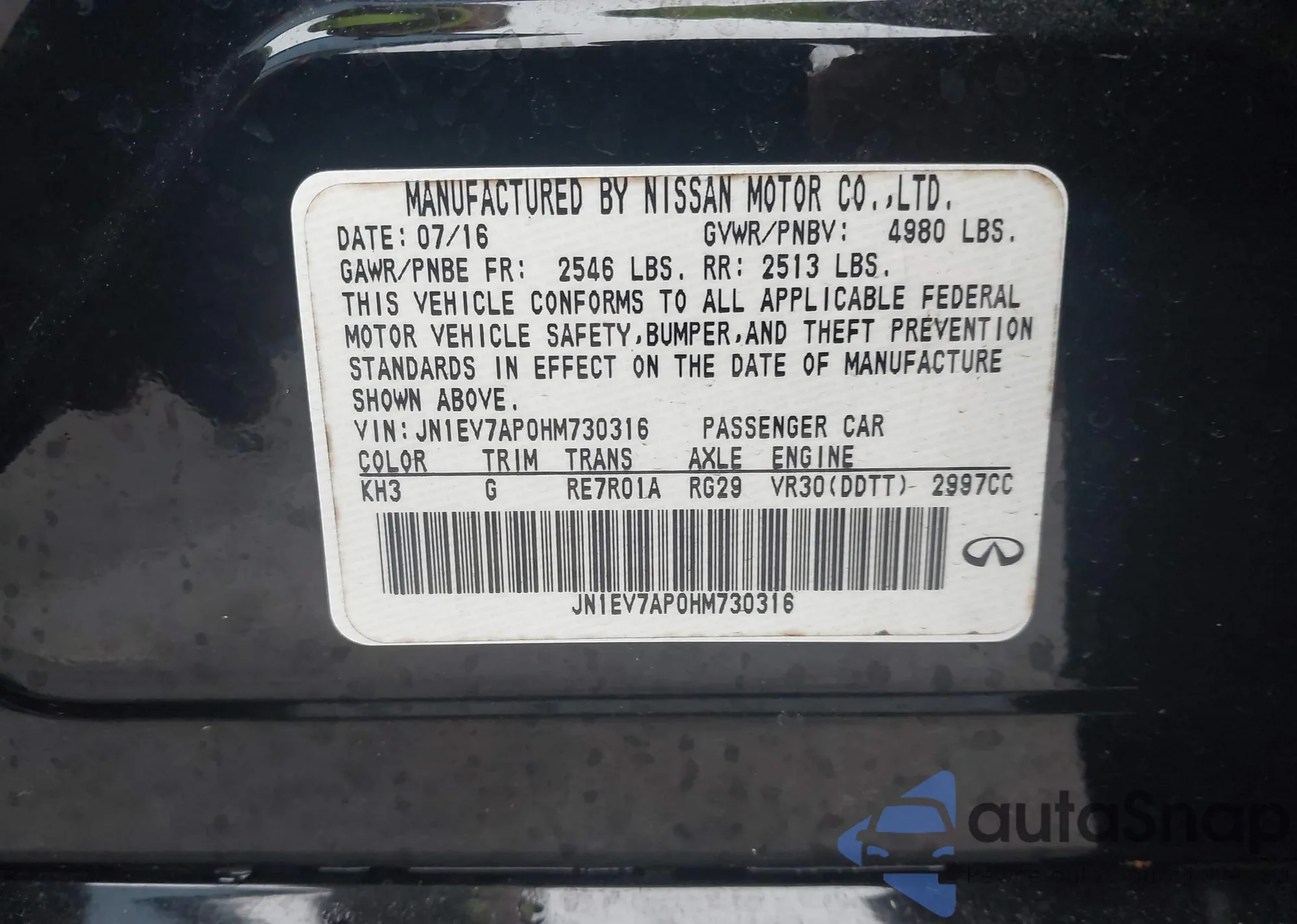 LOT: 42345667 VIN: JN1EV7AP0HM730316