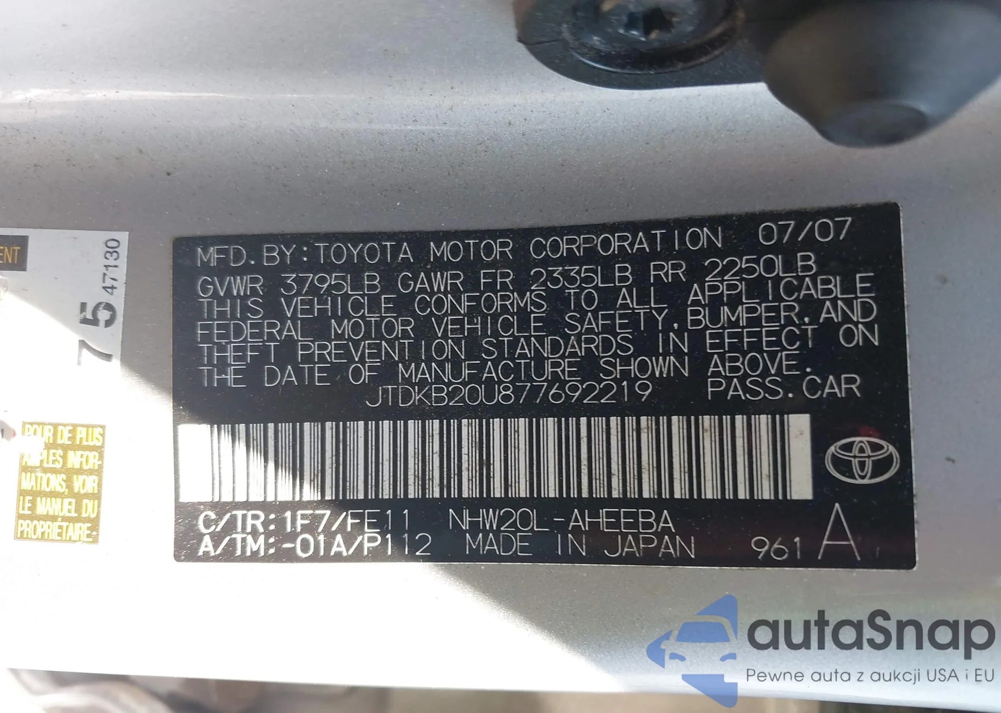 LOT: 42600477 VIN: 4T1FA38P06U106410