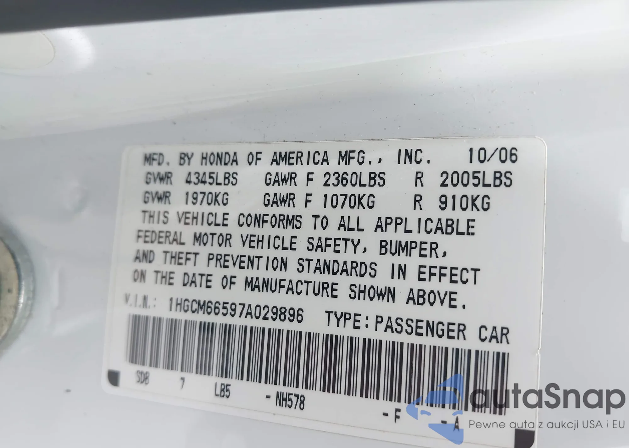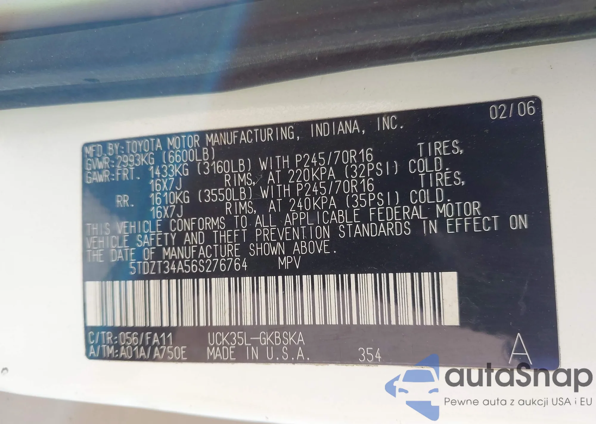 • VIN 4T1FA38P06U106410
