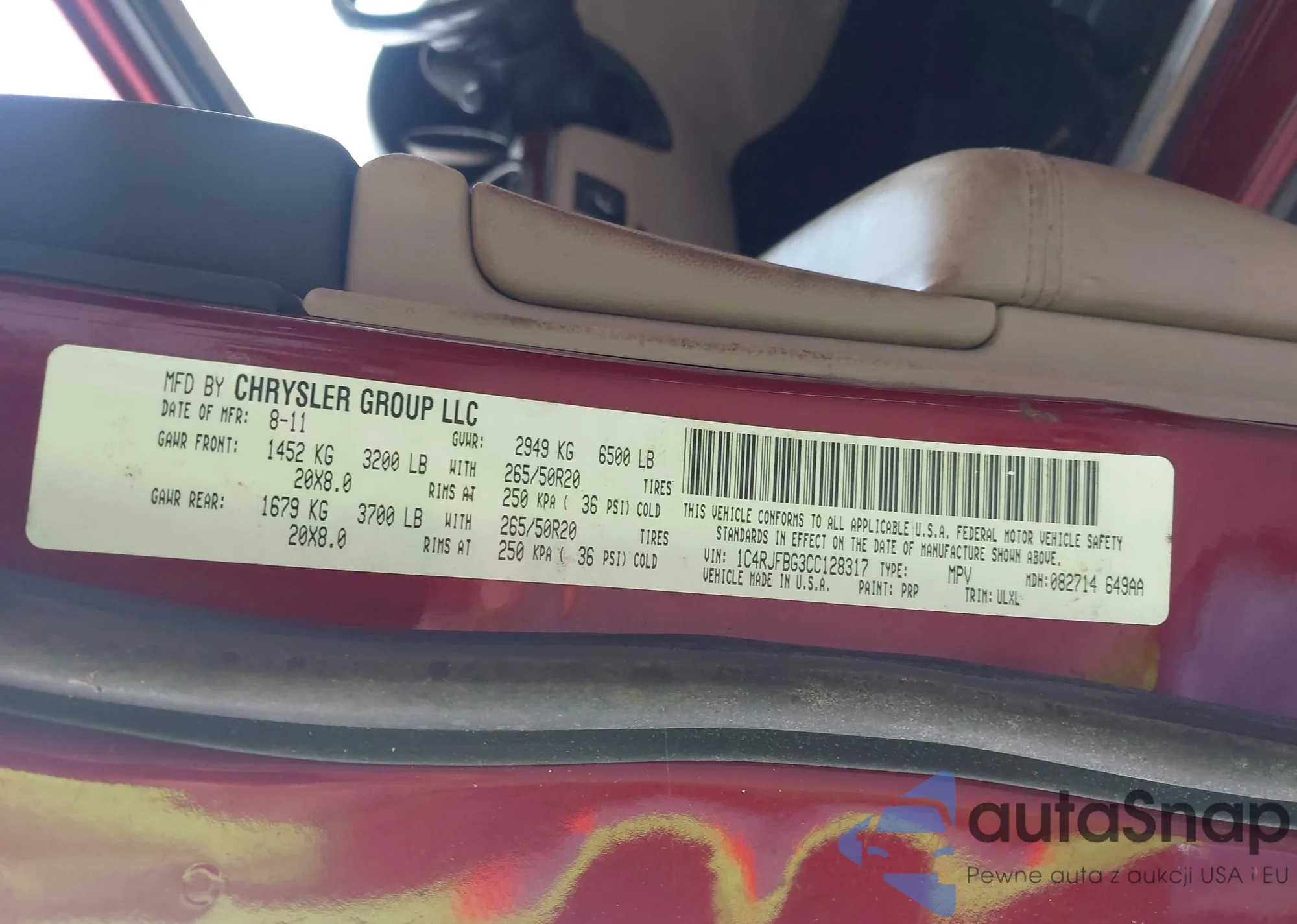 • VIN 1C4RJFBG3CC128317