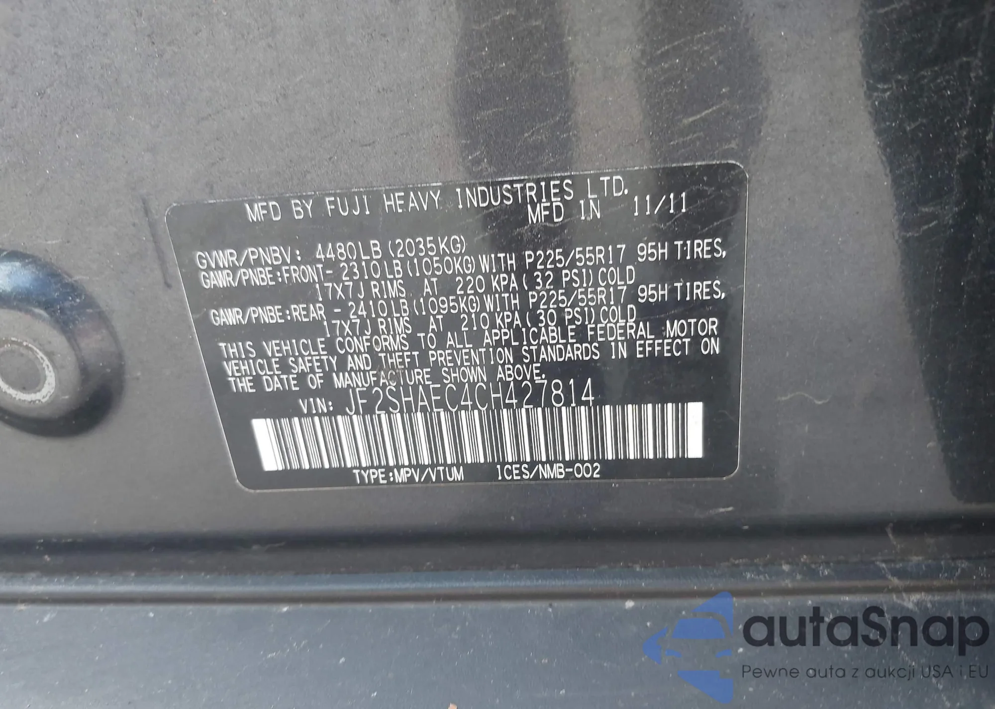 • VIN JF2SHAEC4CH427814