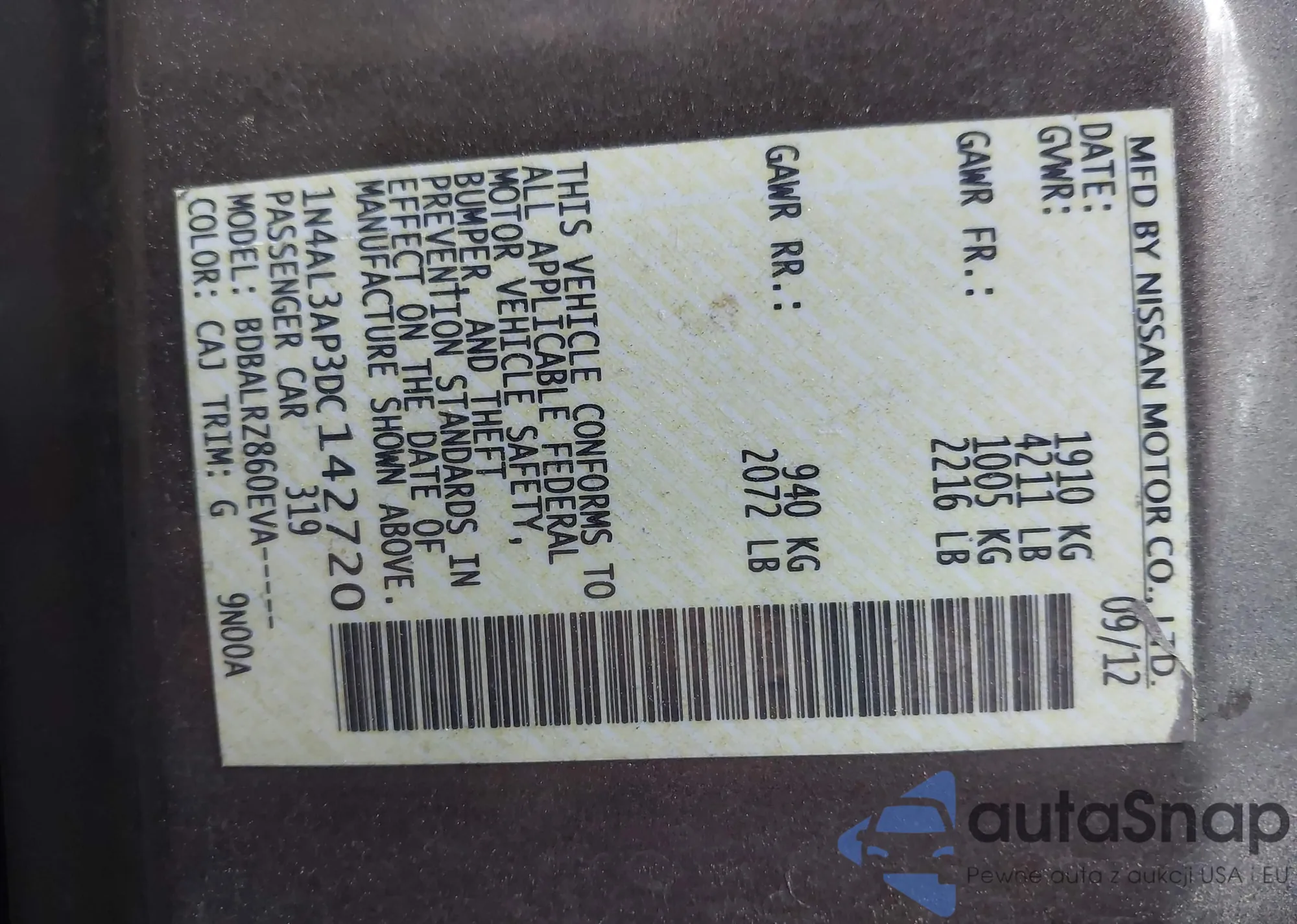 LOT: 42483632 VIN: 1N4AL3AP3DC142720