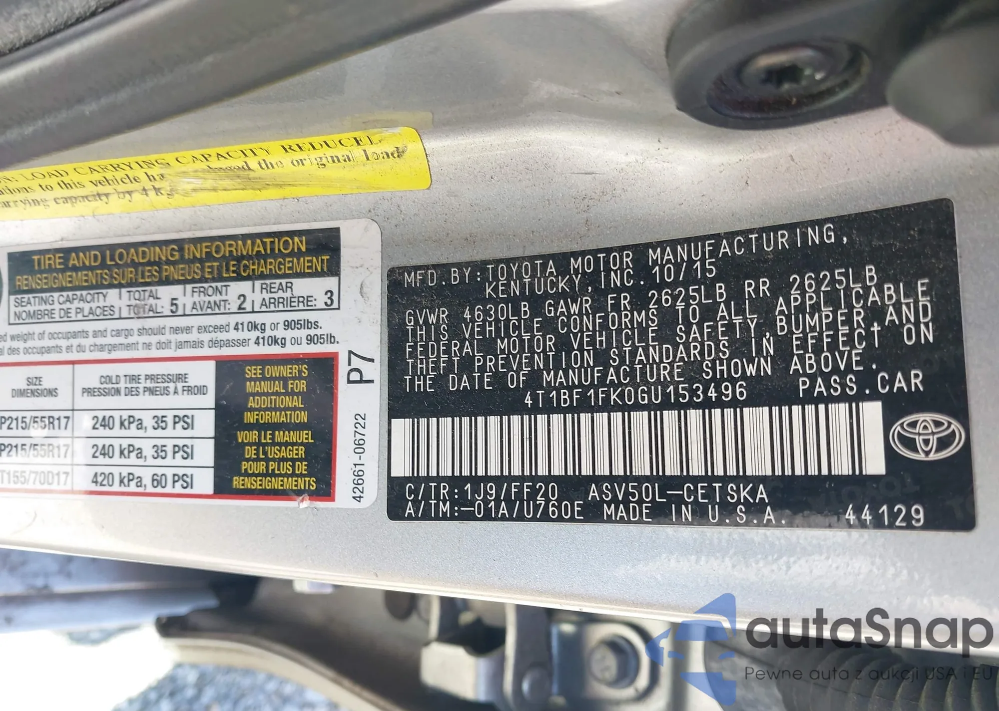 • VIN 4T1BF1FK0GU153496