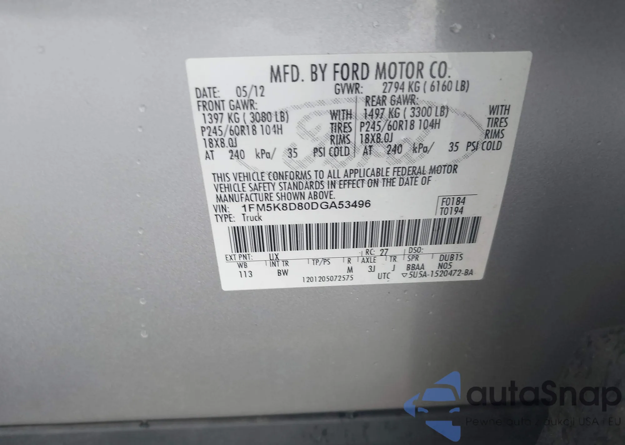 • VIN 1FM5K8D80DGA53496