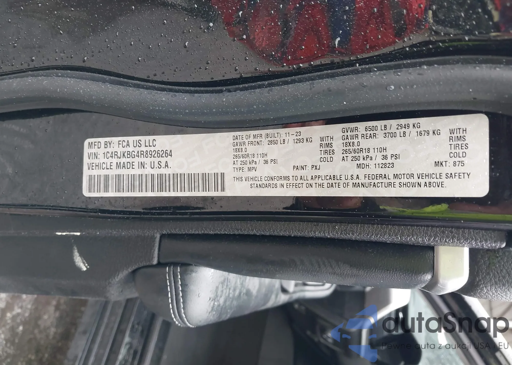 • VIN 1C4RJKBG4R8926264