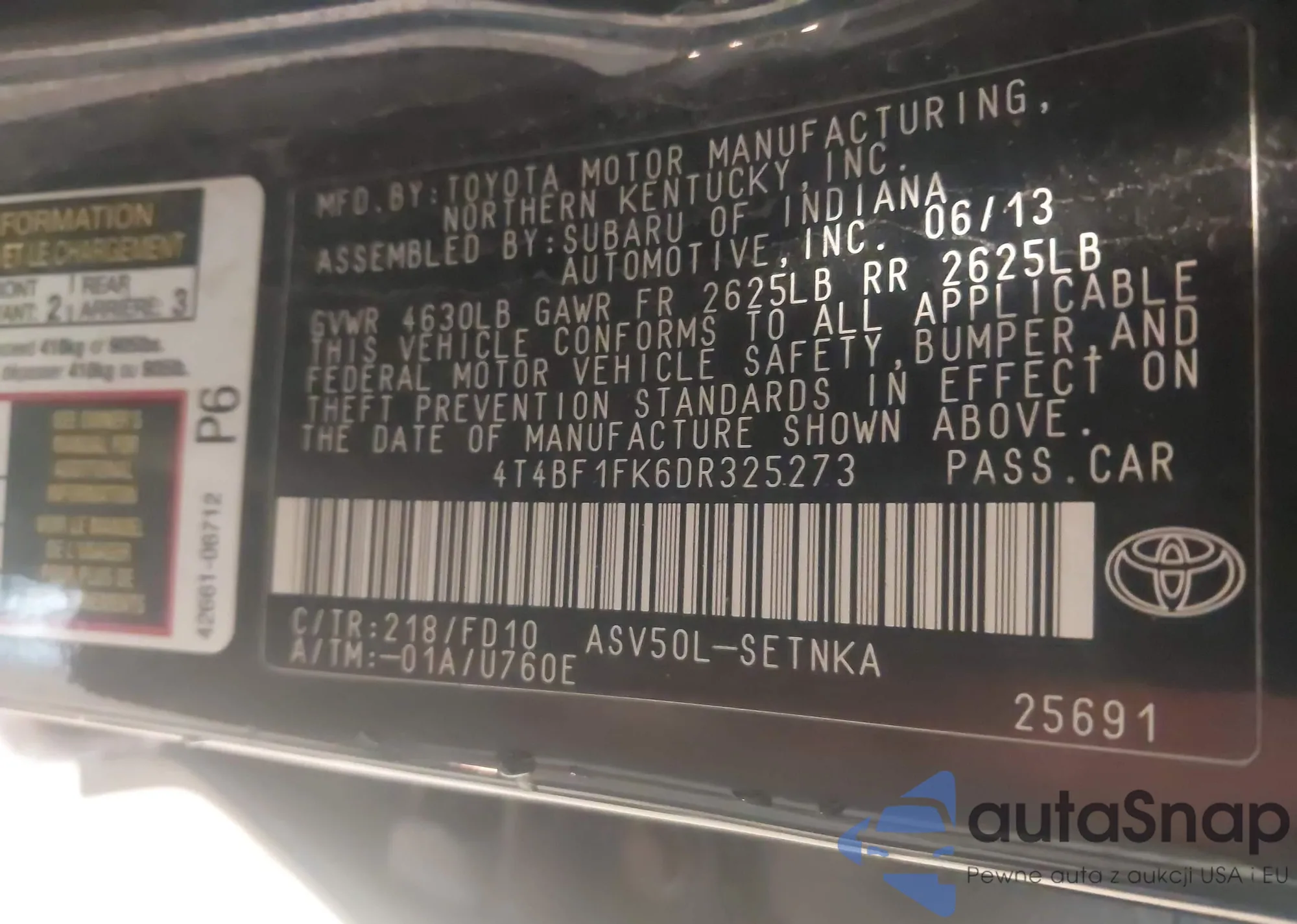 • VIN 4T1BF1FK8FU022458