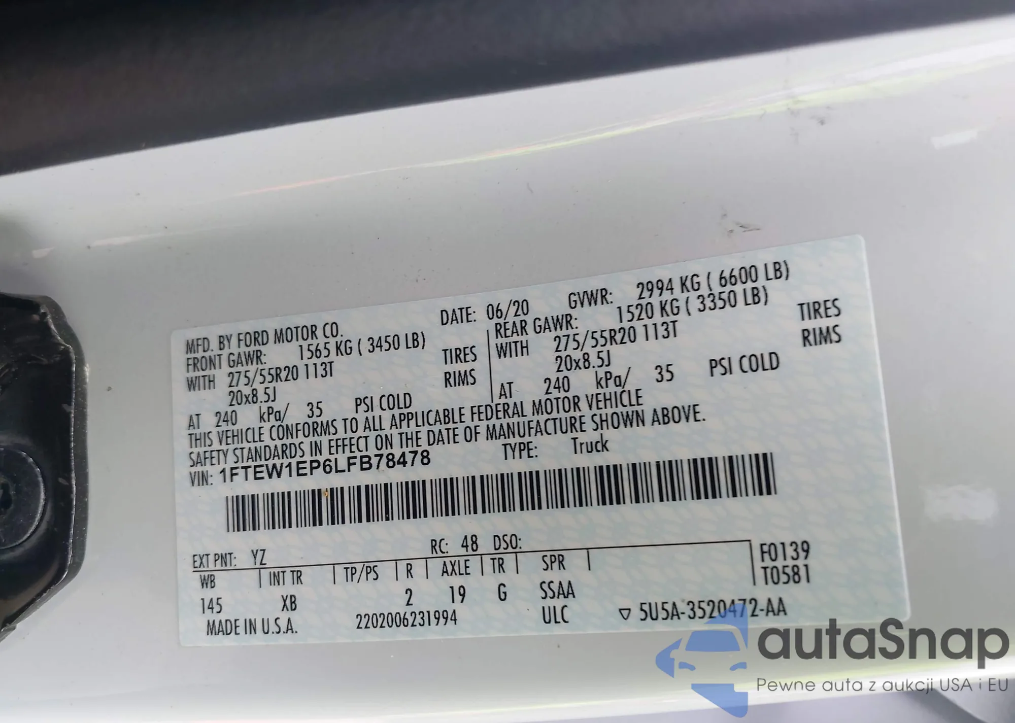 LOT: 42370442 VIN: 1FTEW1EP6LFB78478