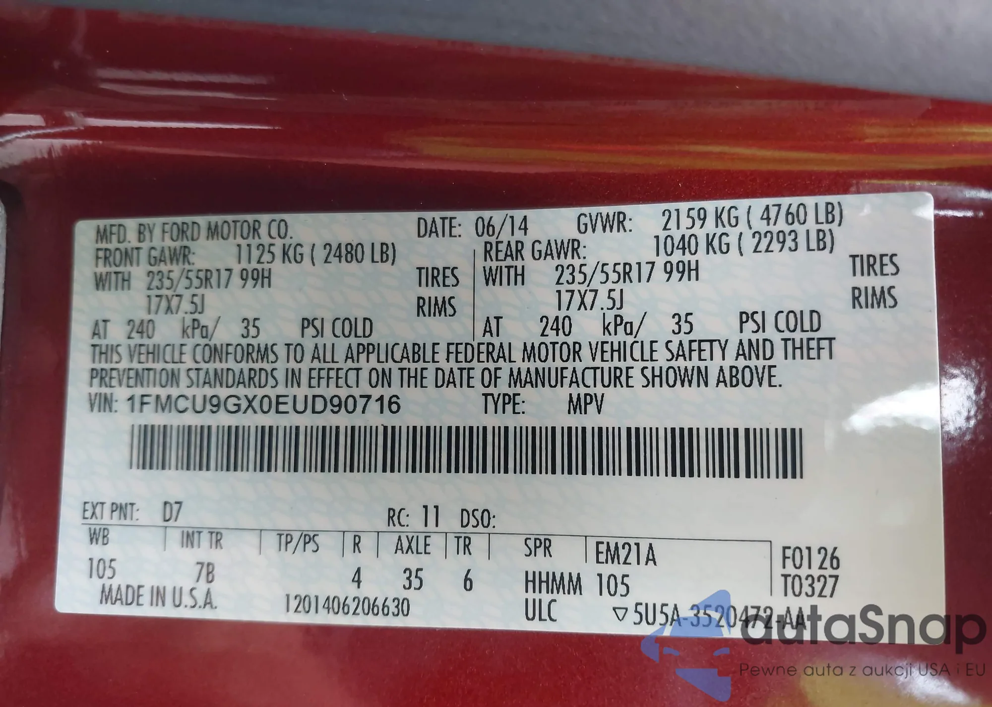 LOT: 42589732 VIN: 1FMCU9GX0EUD90716