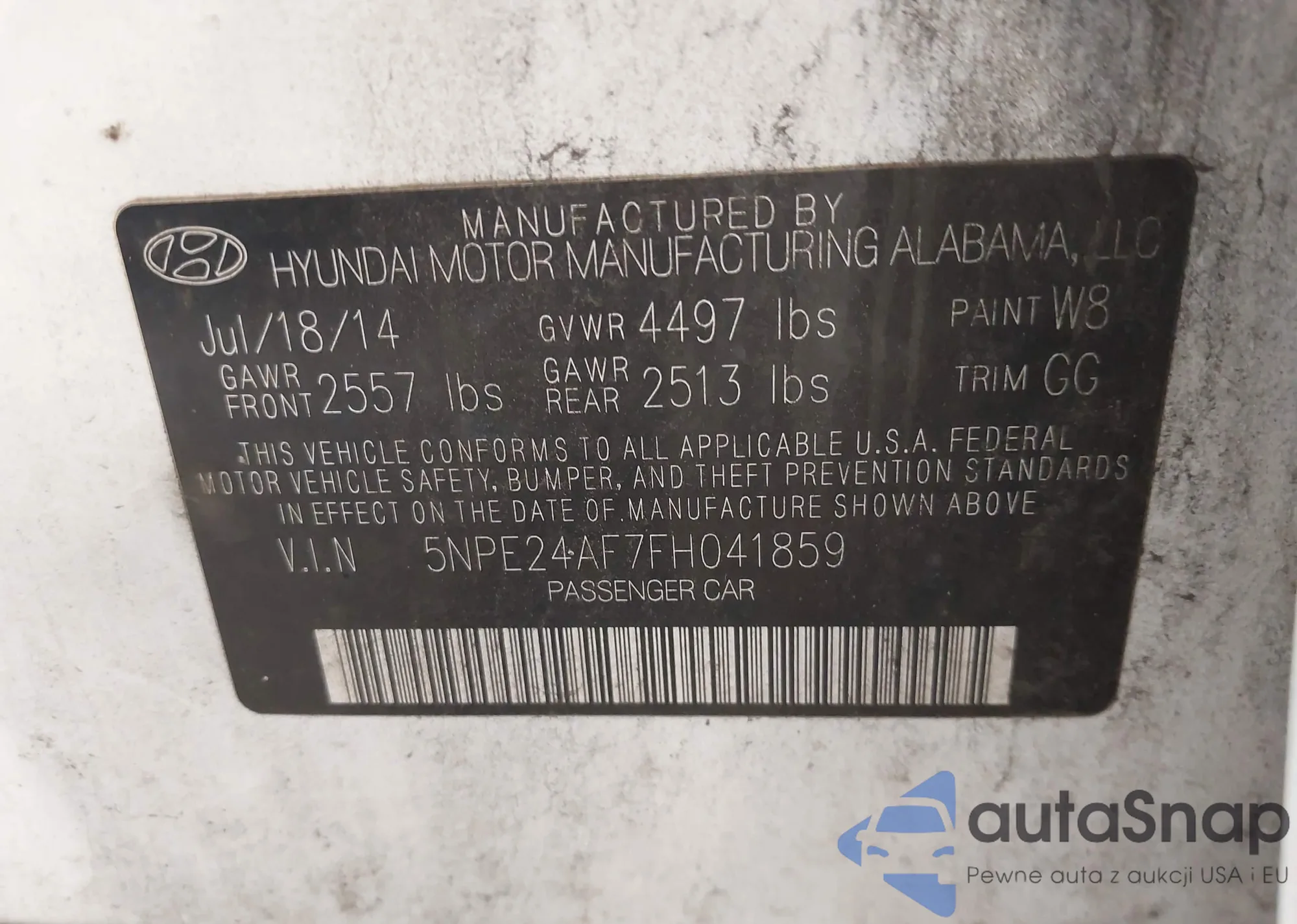 • VIN 5NPE24AF7FH041859