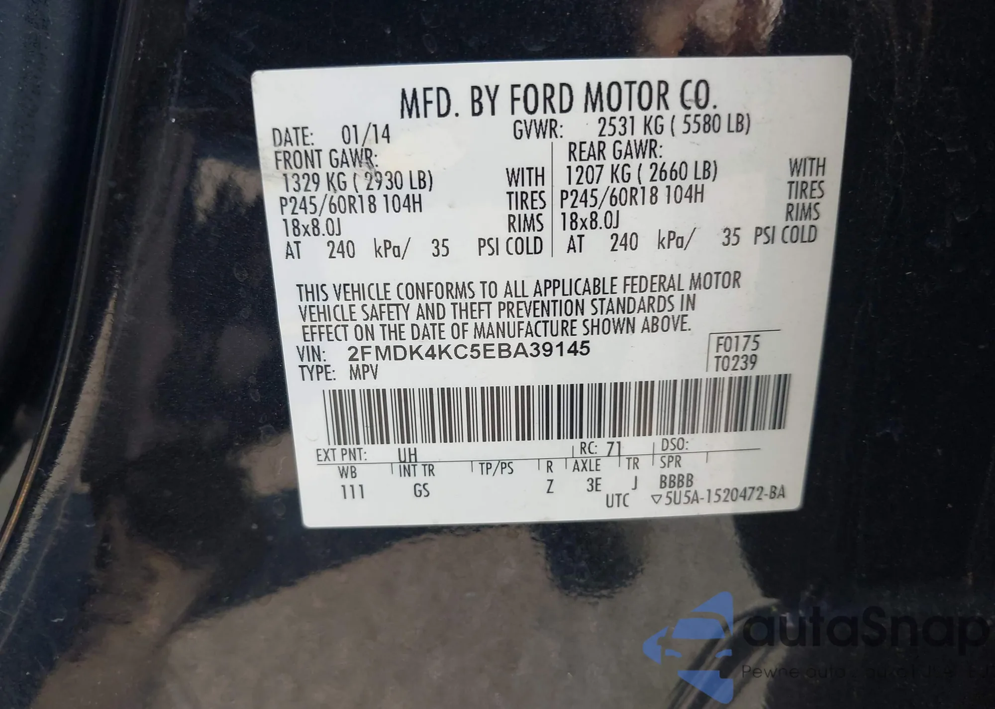 • VIN 2FMDK4KC5EBA39145