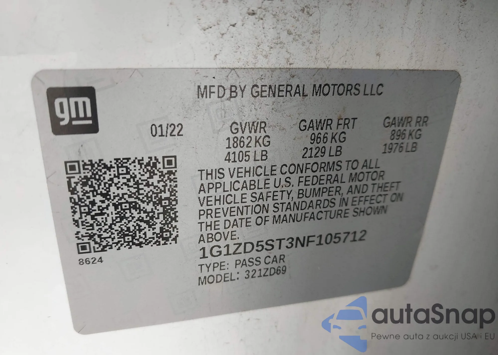 LOT: 42450062 VIN: 1G1ZD5ST3NF105712