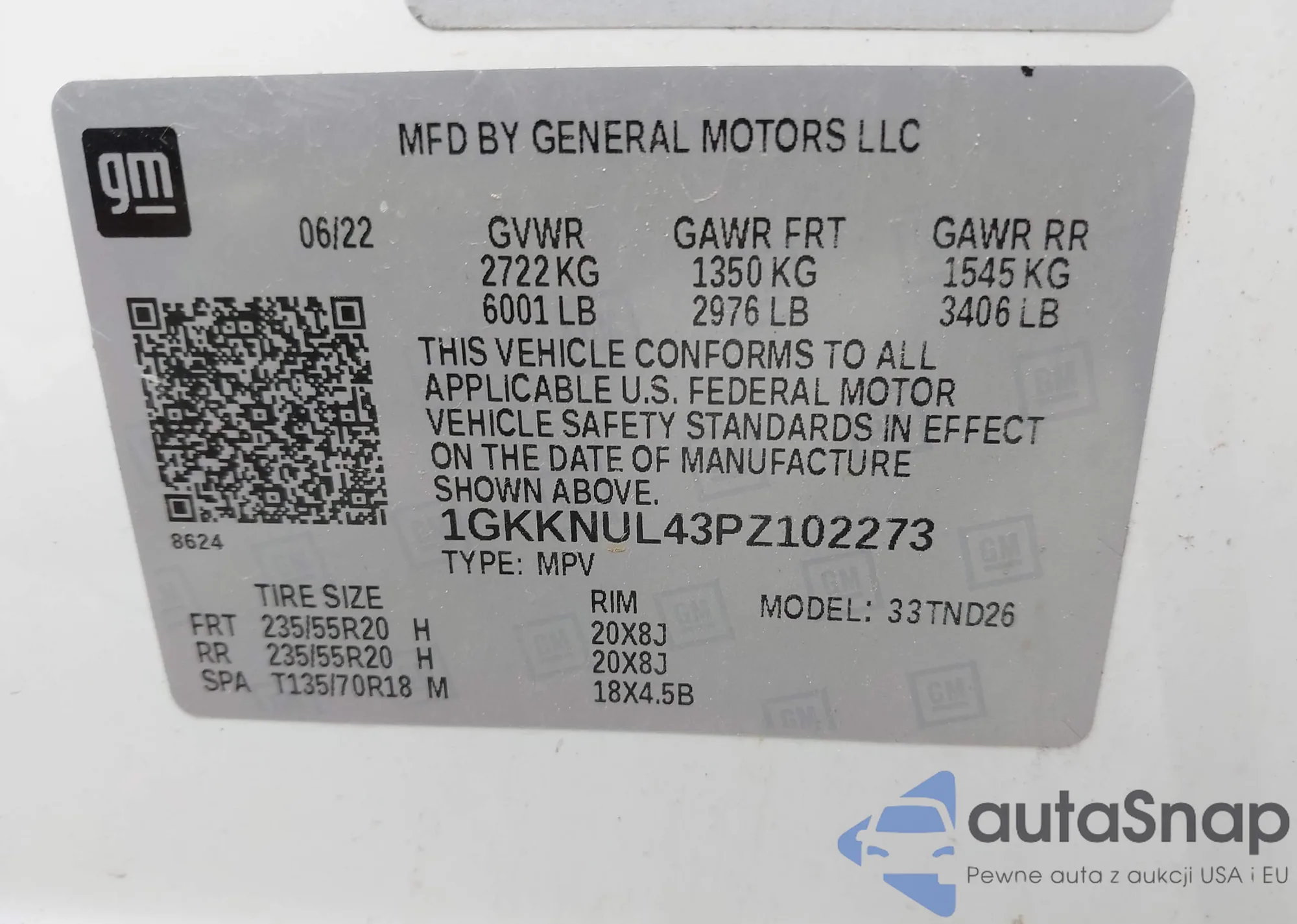 LOT: 42470568 VIN: 1GKKNUL43PZ102273