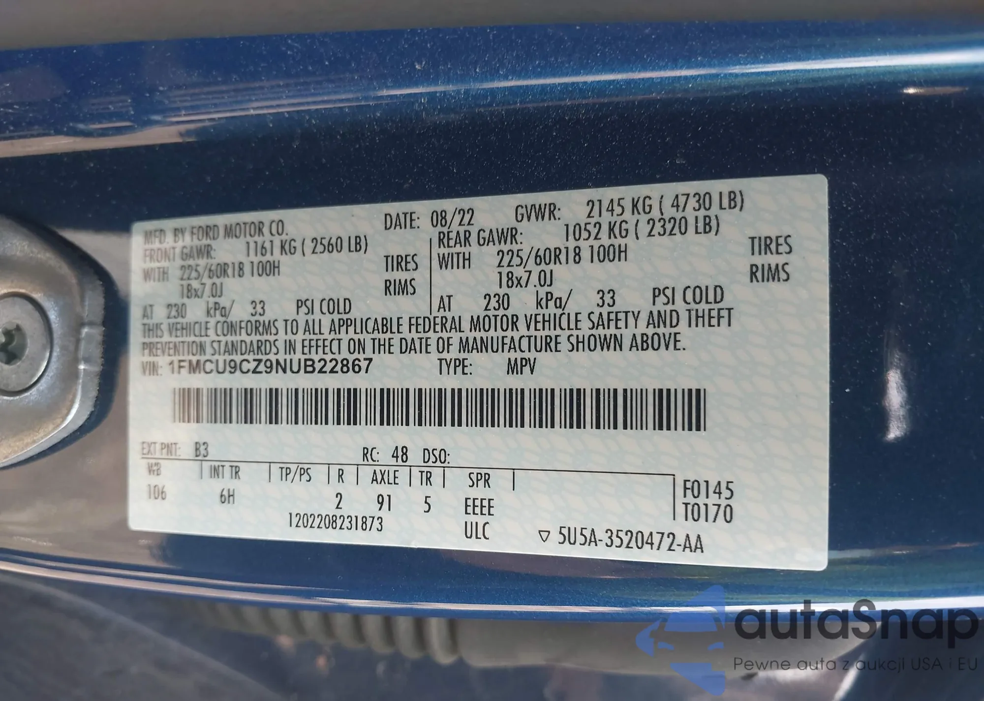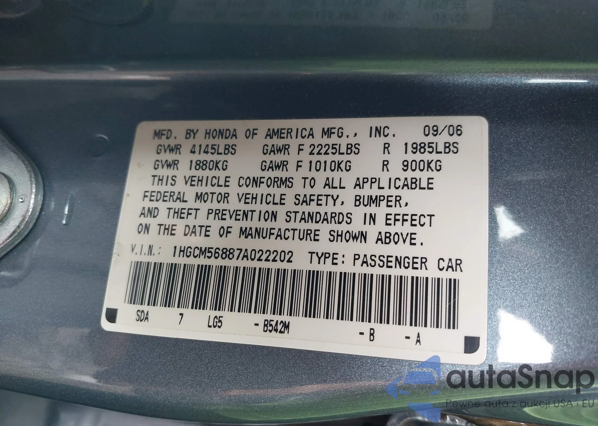 • VIN 5J6RT6H99NL012877