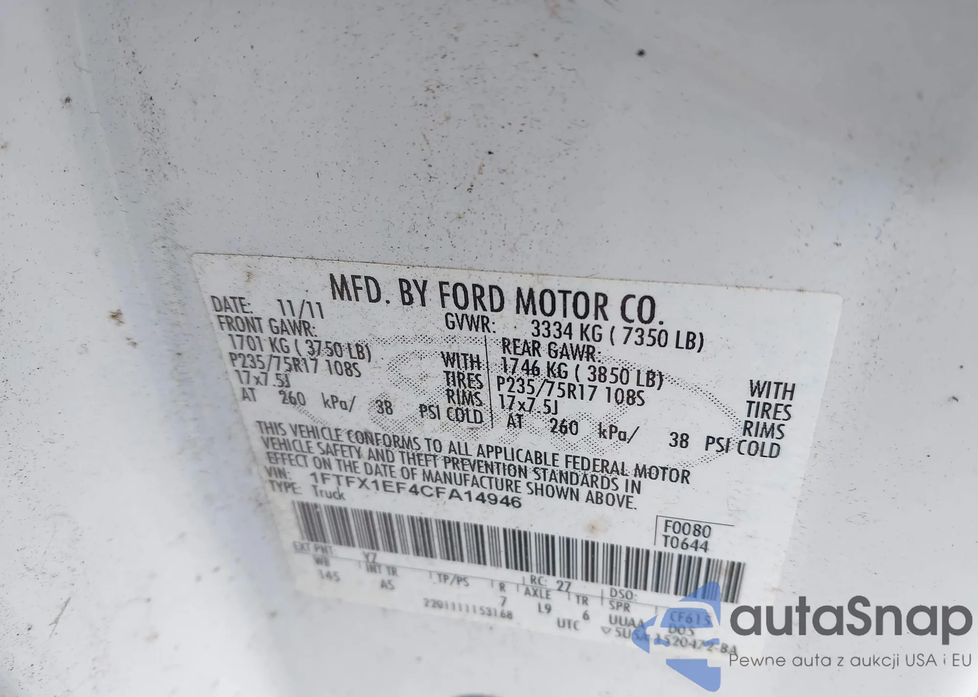 • VIN 1FTFX1EF4CFA14946
