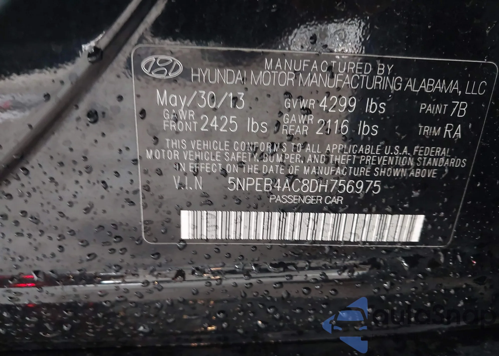 • VIN 5NPEB4AC8DH756975