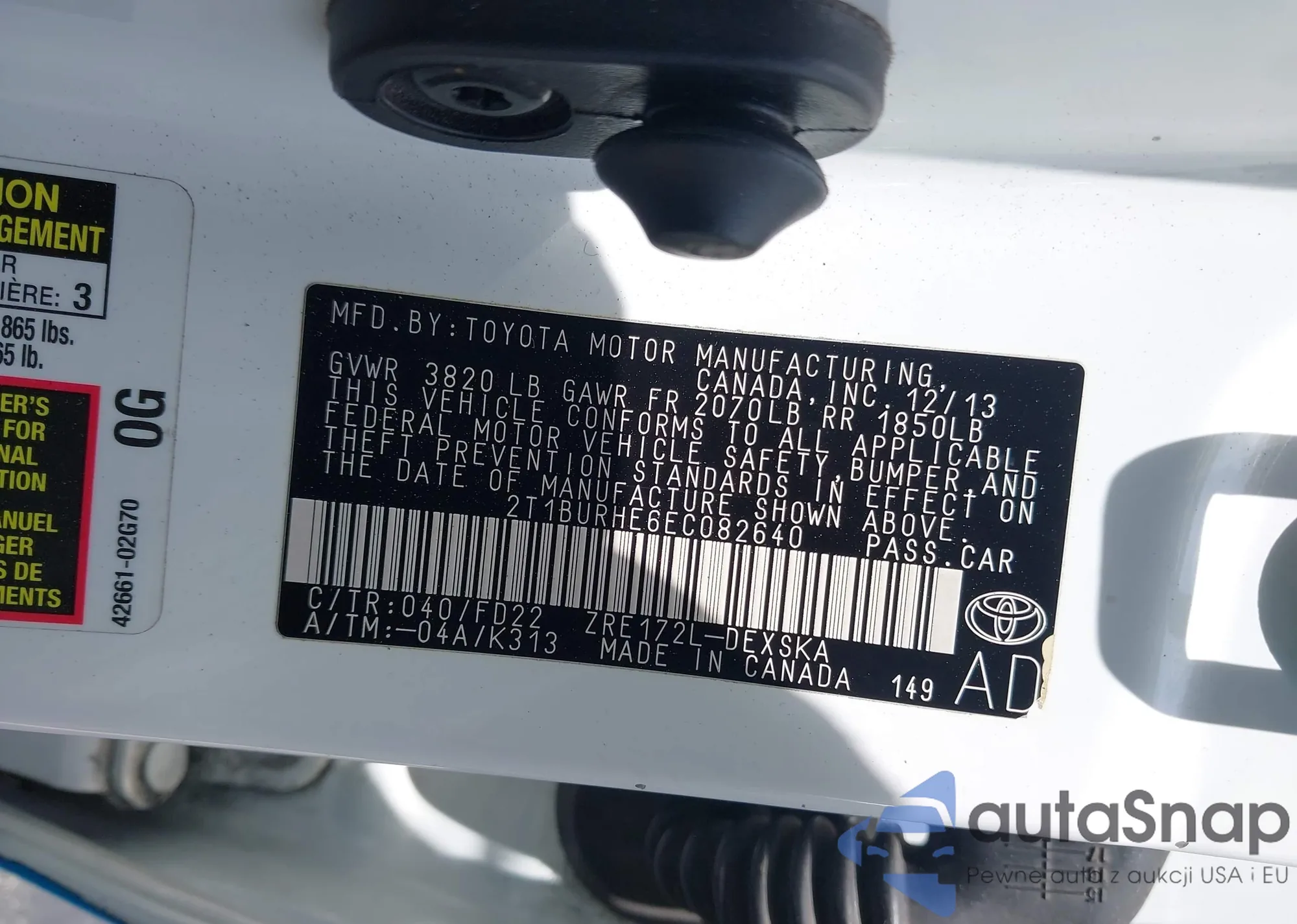 LOT: 42687961 VIN: 2T1BURHE6EC082640