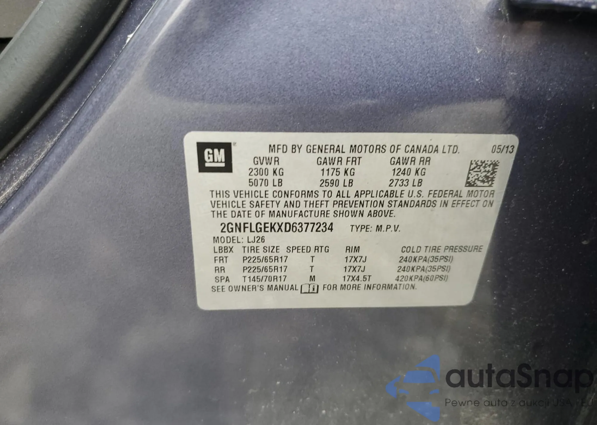 • VIN 2GNFLGEKXD6377234