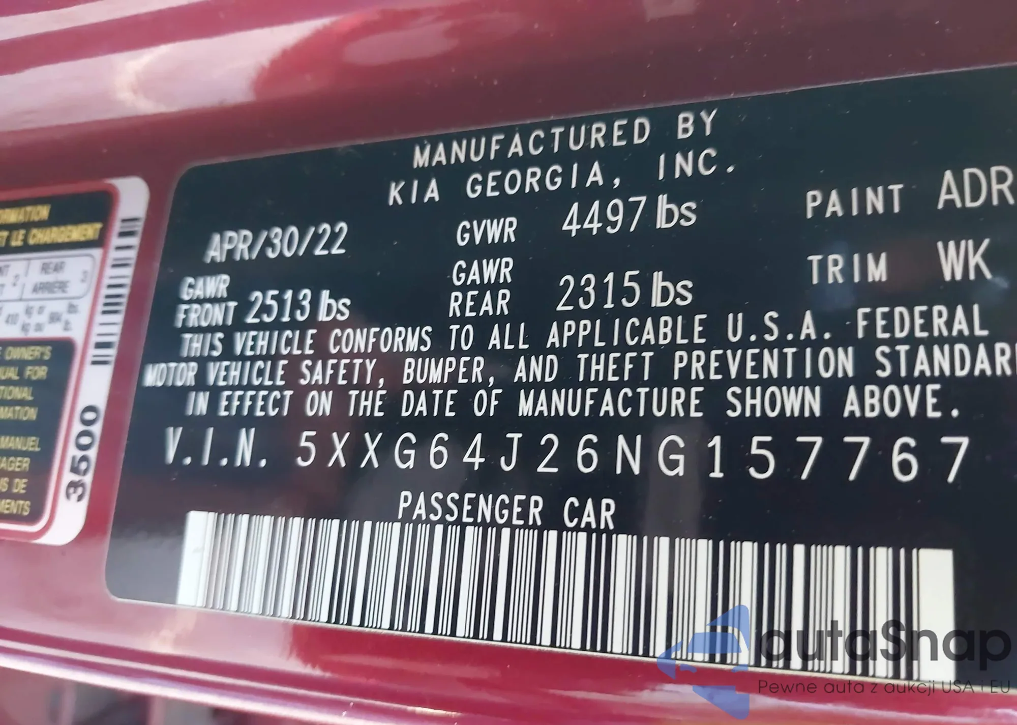 • VIN 5XXG64J26NG157767