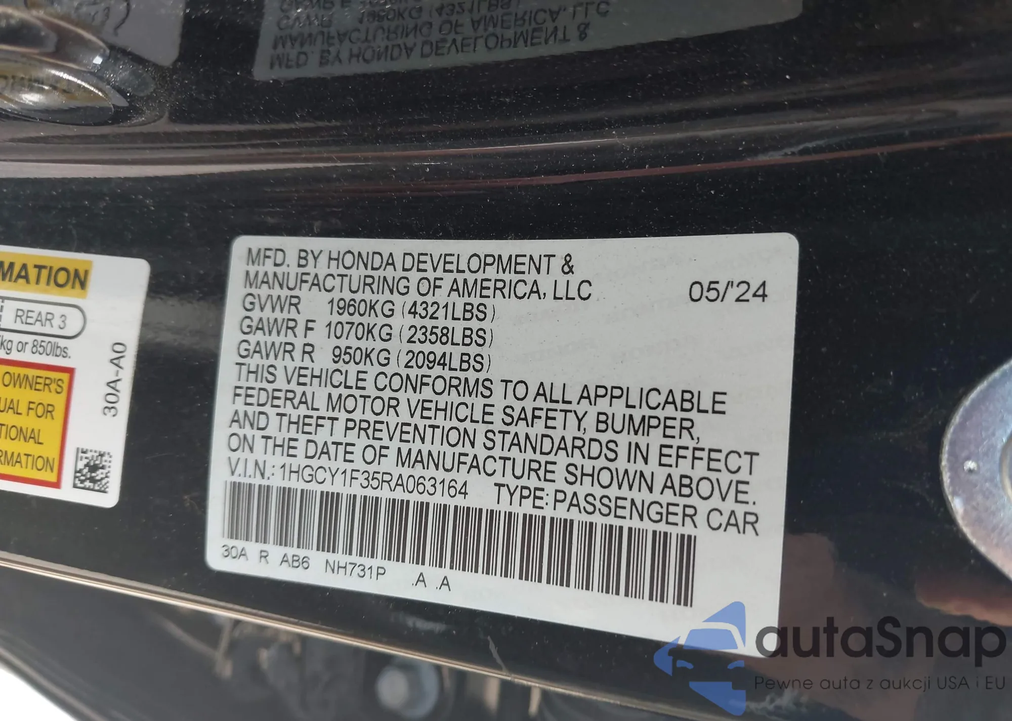 • VIN 1HGCY1F35RA063164