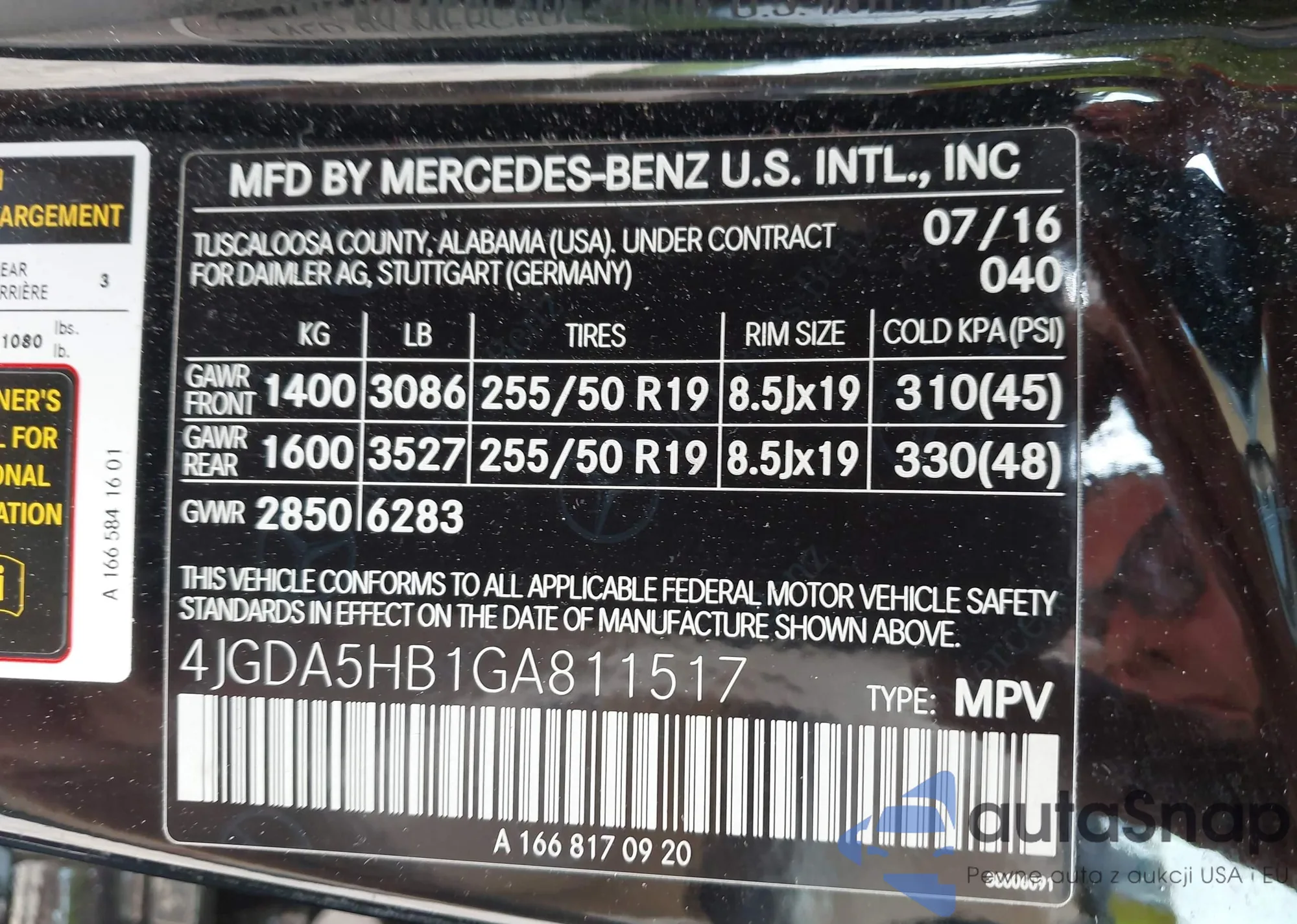 • VIN 4JGDA5HB1GA811517