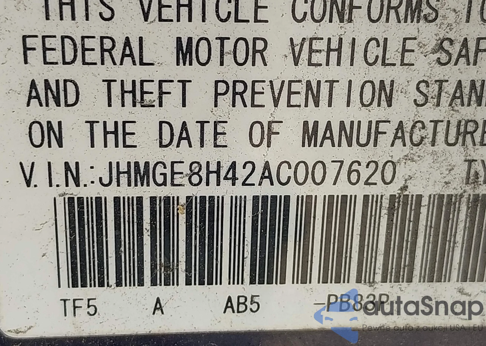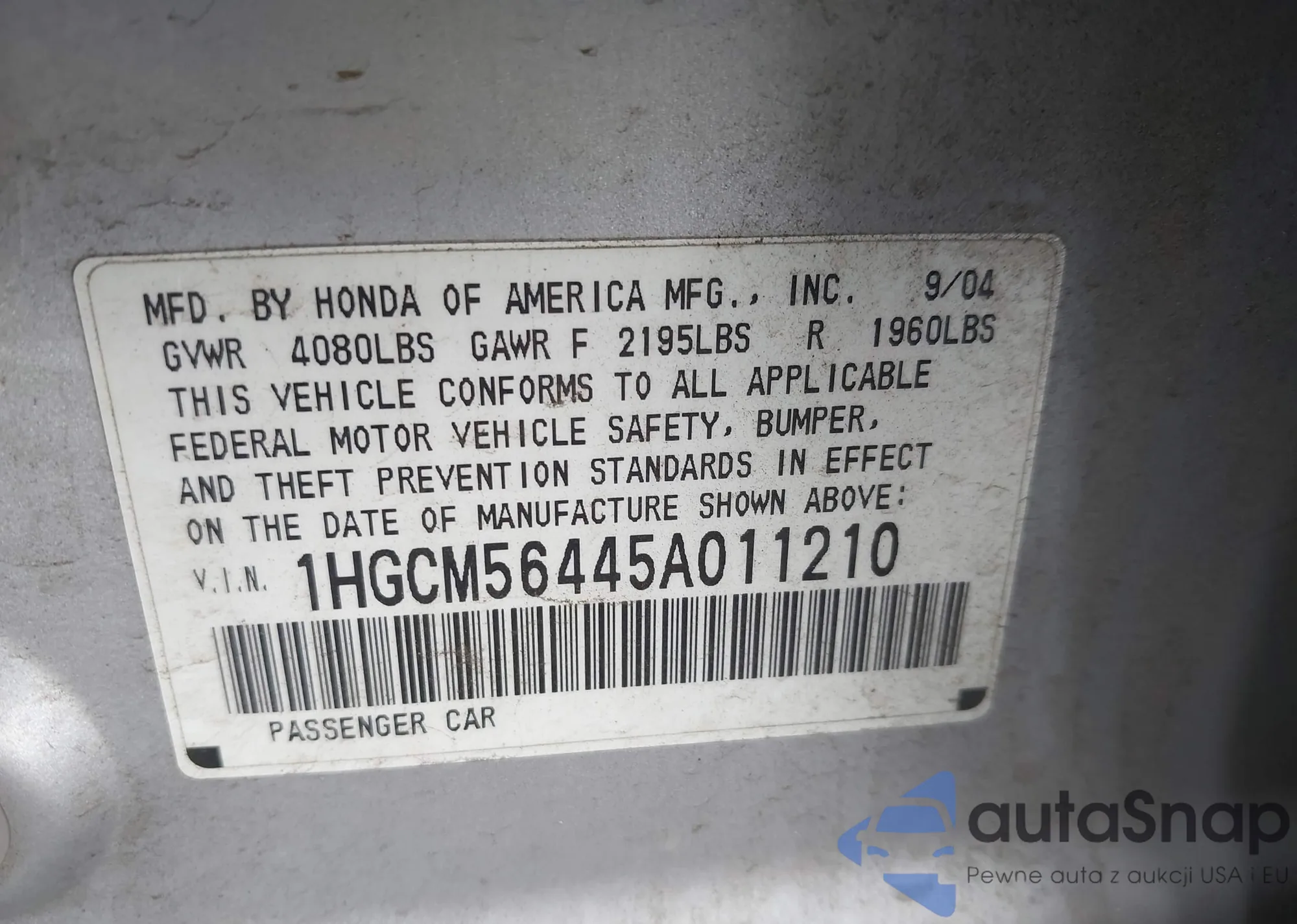 LOT: 42800122 VIN: 1HGCM56445A011210