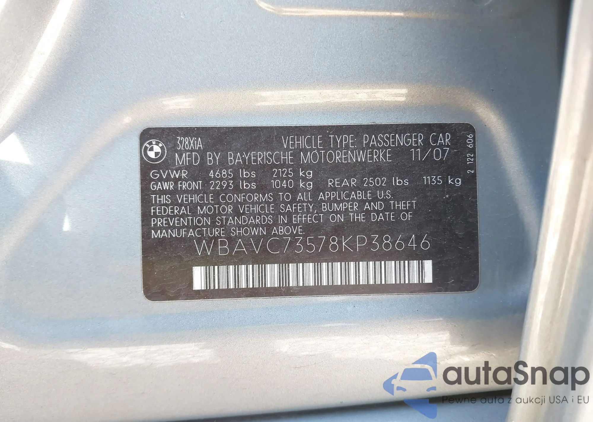 LOT: 42766667 VIN: WBAVC73578KP38646