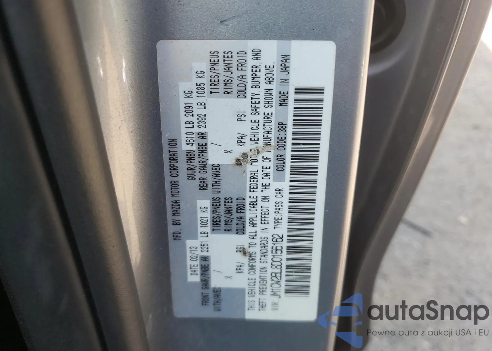 LOT: 71215214 VIN: JM1BM1M76F1224340