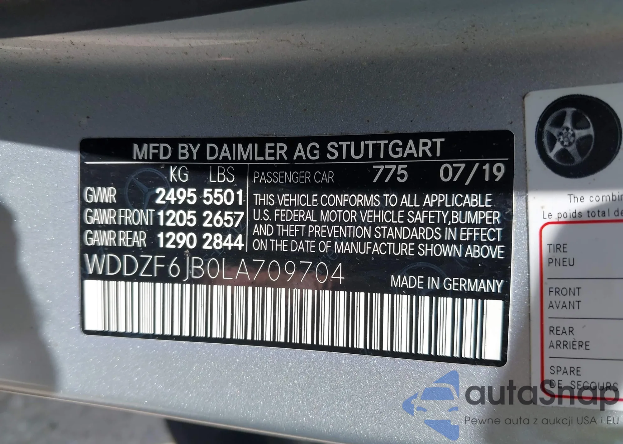 • VIN WDDZF6JB0LA709704