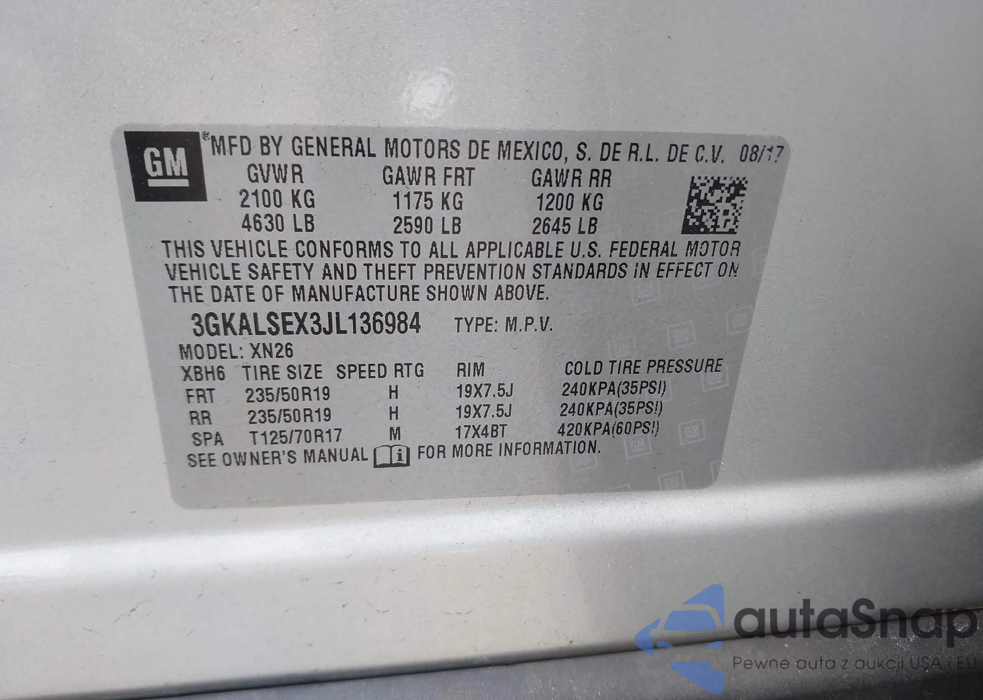 LOT: 42706691 VIN: 3GKALSEX3JL136984