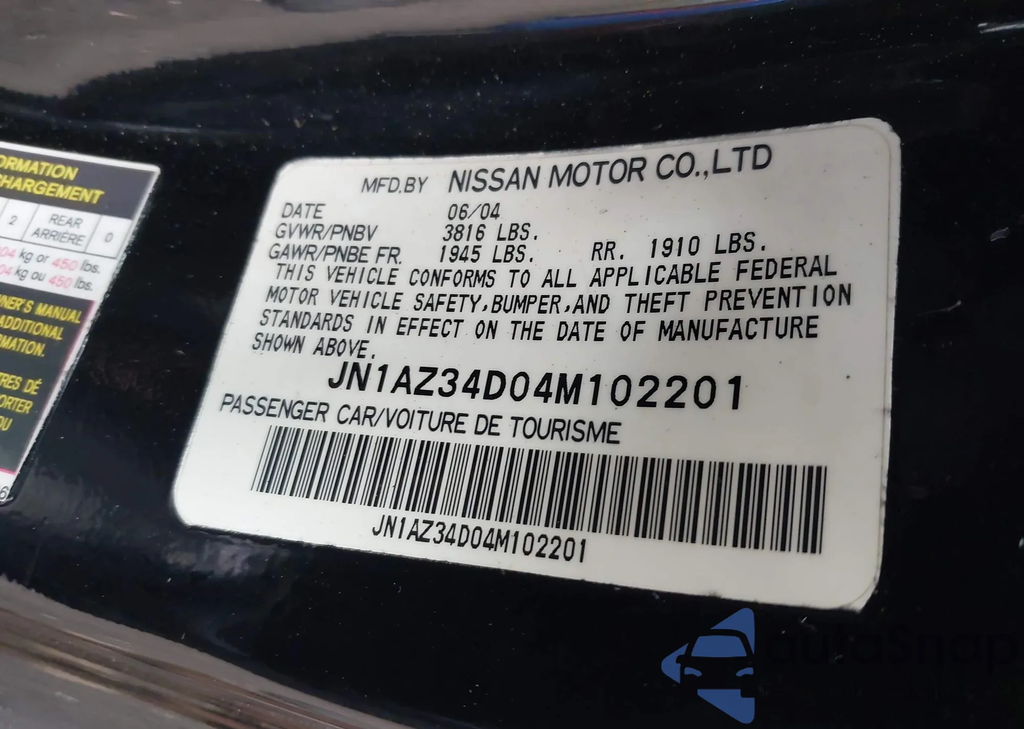 • VIN JN1AZ34D04M102201