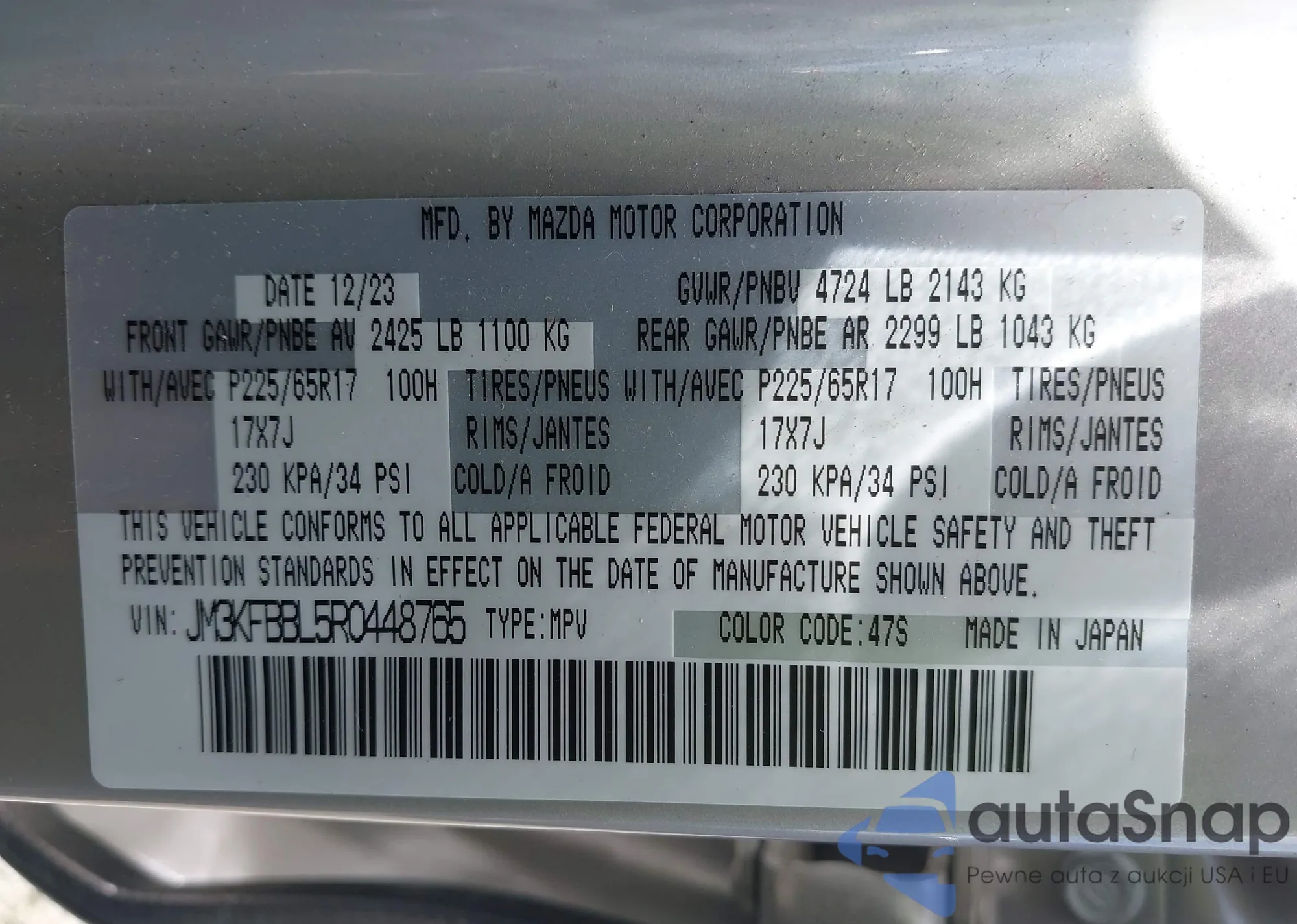LOT: 42500621 VIN: 55SWF4KB8JU237139