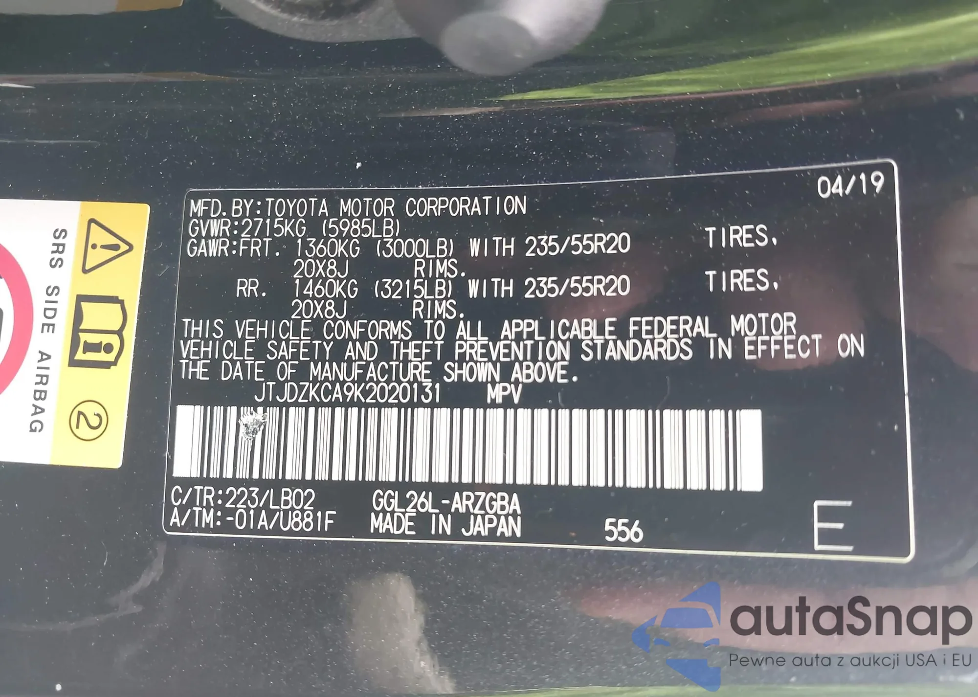 LOT: 42499760 VIN: JTMBF33V19D019386