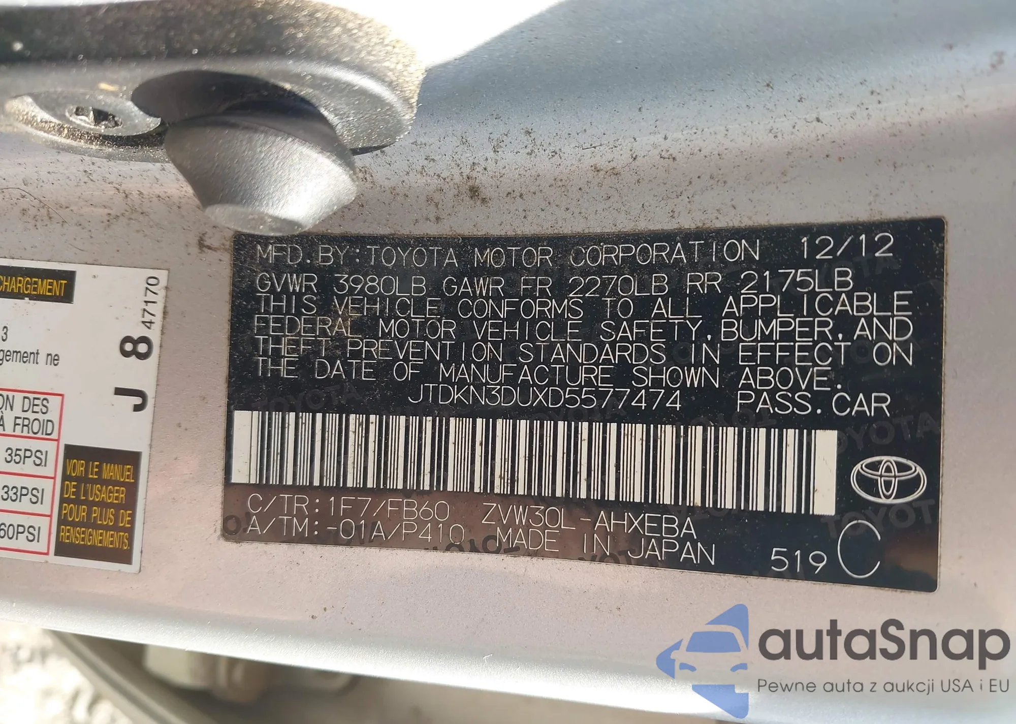 • VIN JTDKN3DUXD5577474