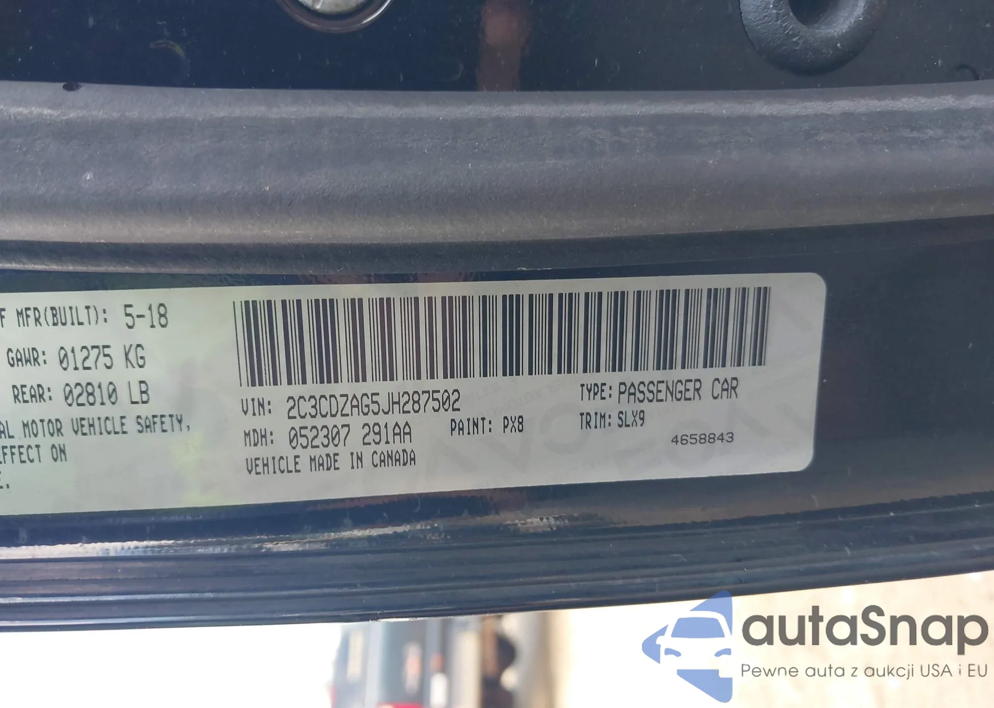 • VIN 2C3CDZAG5JH287502