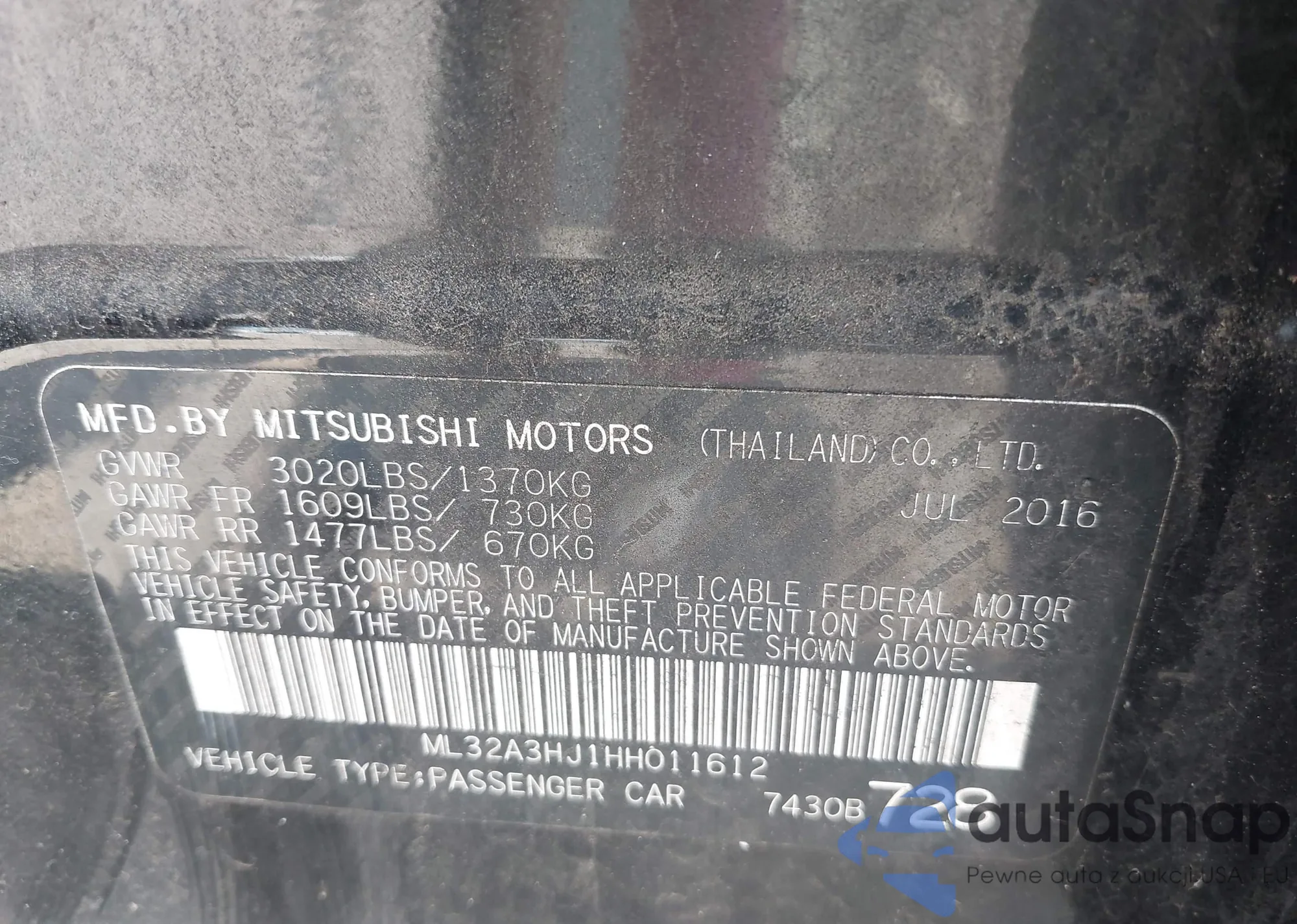 LOT: 42845940 VIN: ML32A3HJ1HH011612