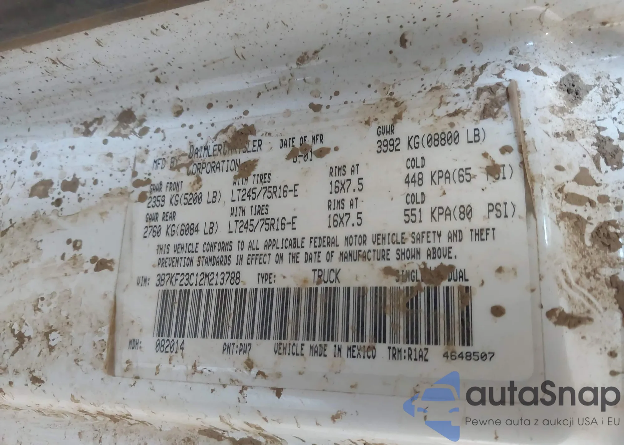 LOT: 42707991 VIN: 3B7KF23C12M213788